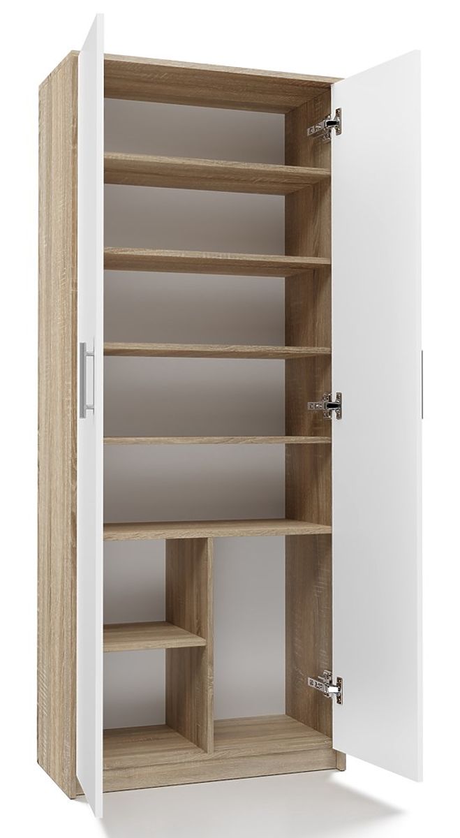 Shelf with 8 shelves and 2 doors in Sonoma Oak and Matte White. .. more