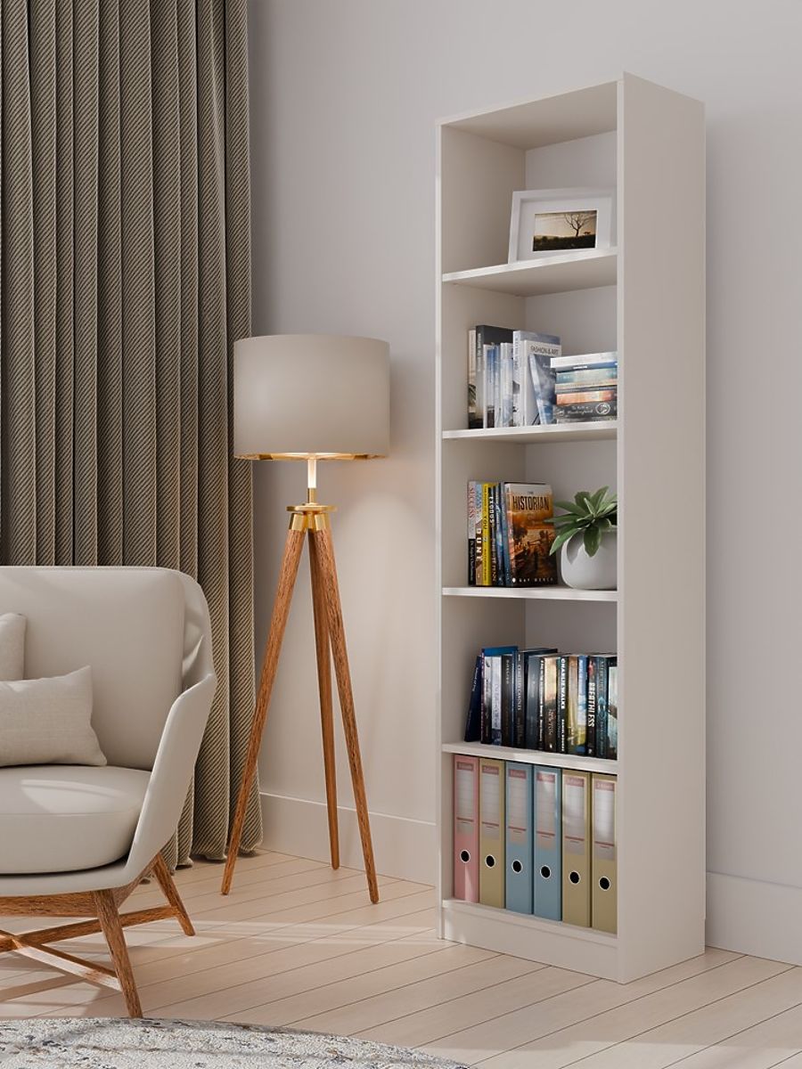 Elegant and functional bookcase in cashmere color is a perfect solution for storing books, binders, toys, and office materials.