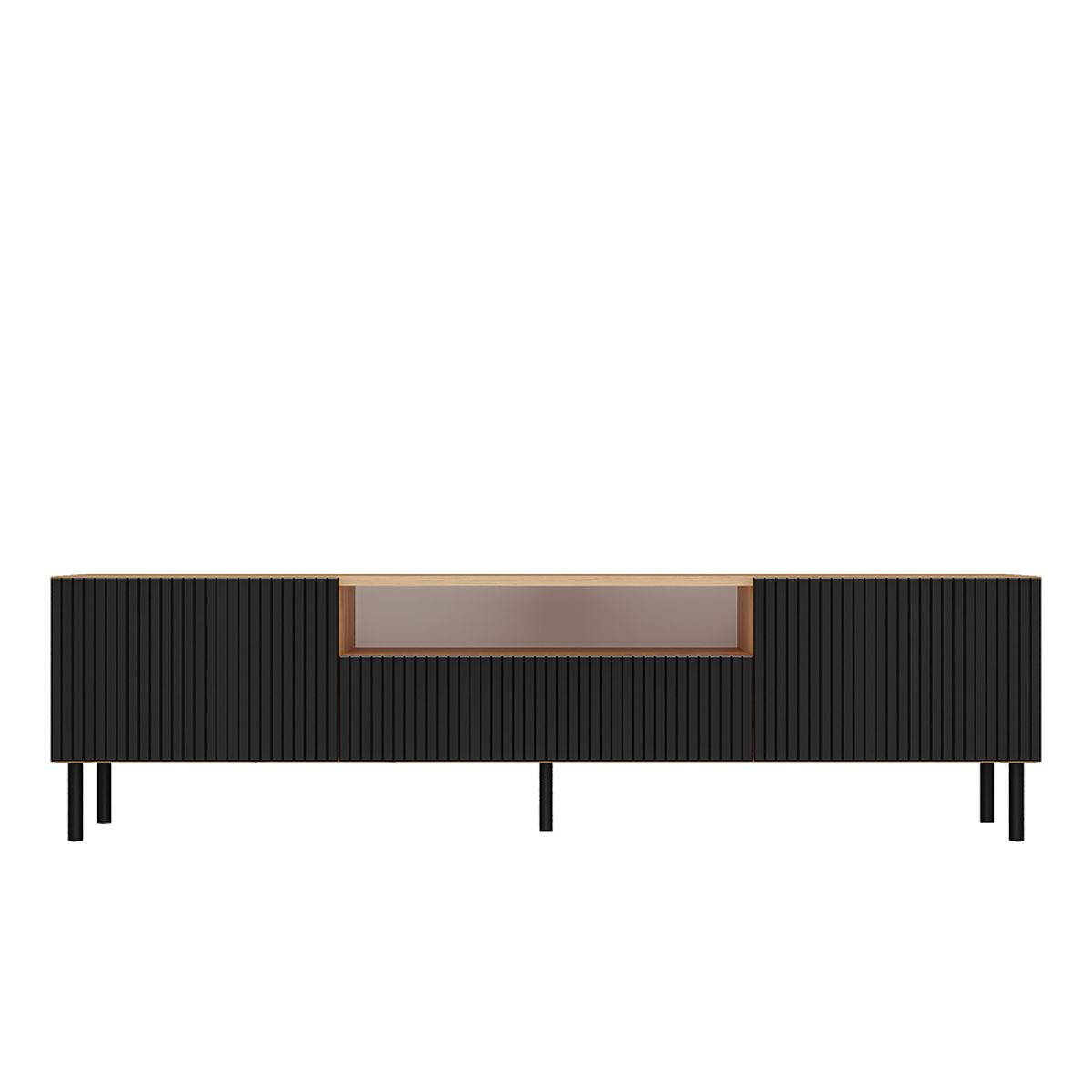 A major advantage is the round metal legs with a height of 13 cm, which give the entire structure visual lightness and ensure the stability of the TV cabinet.