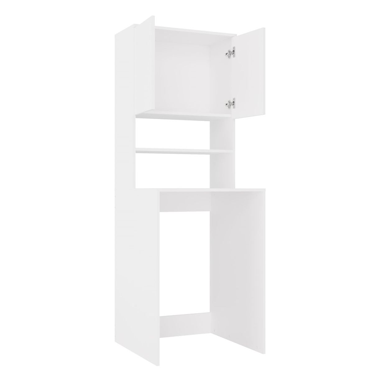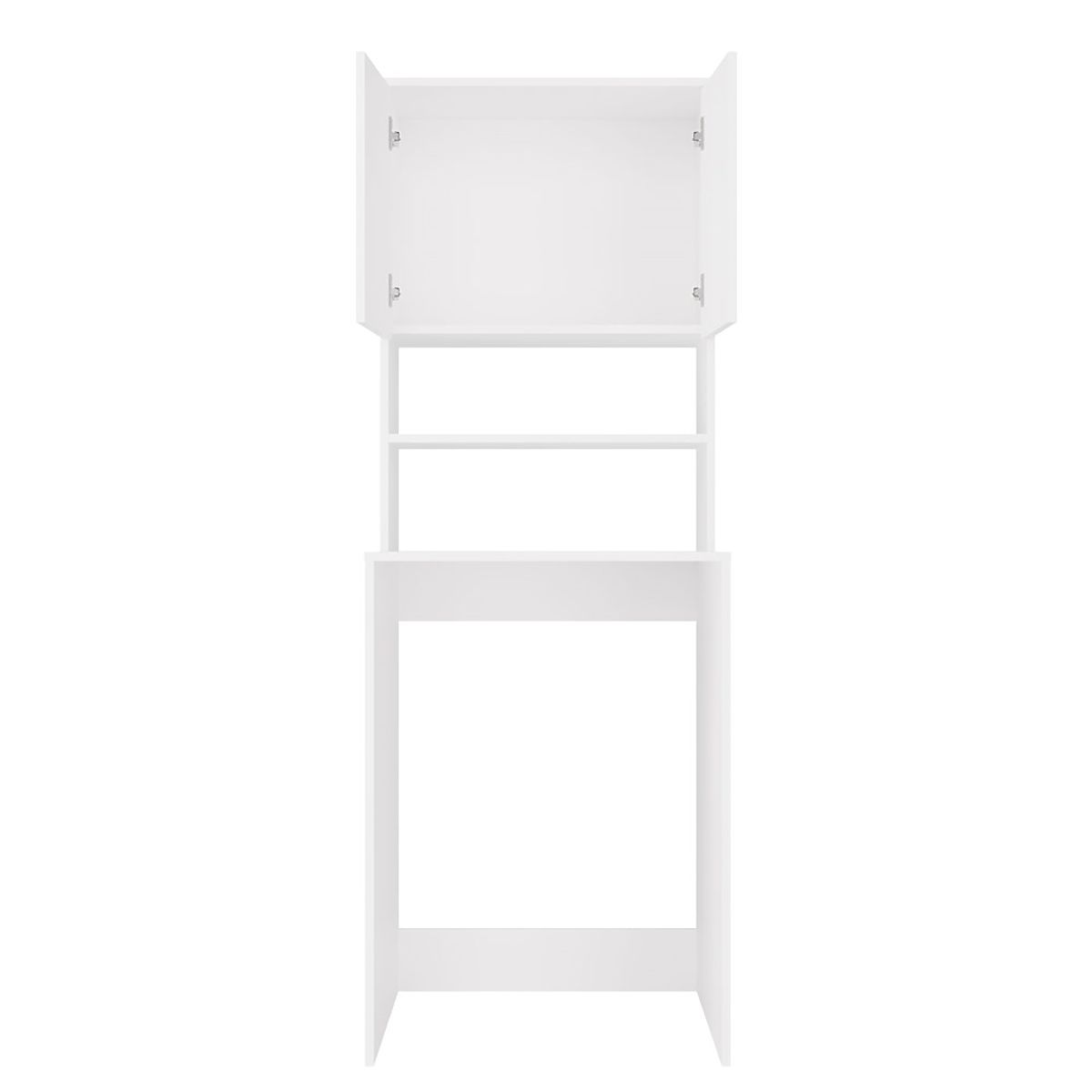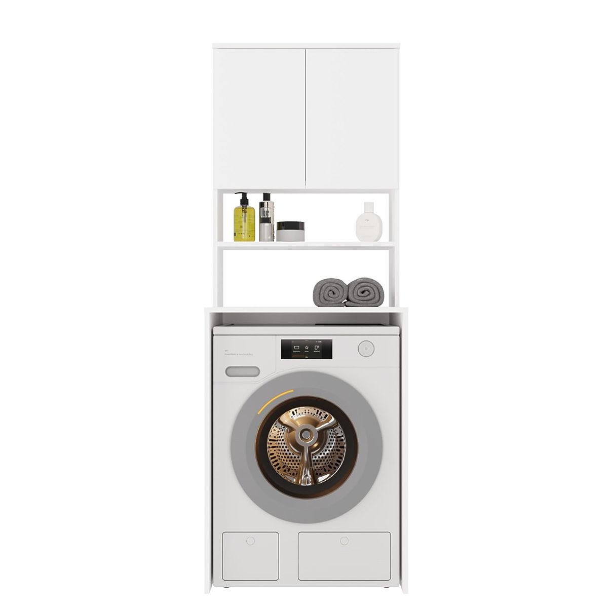 Bathroom shelf above washing machine maximizes space. .. more