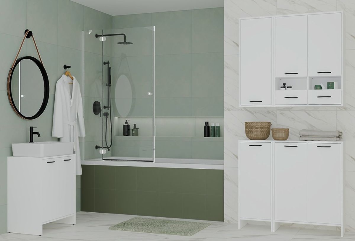 Lukahome.eu » Bathroom & Toilet / Bathrooms lockers / Bathroom Cabinet NINA 1K WHITE 1 Laundry Basket Shelf Column for Bathroom