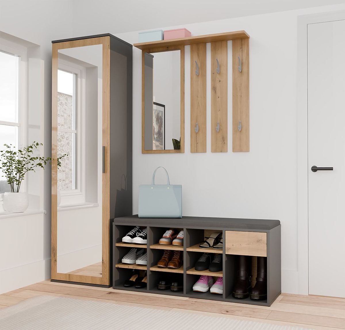 Shoe cabinet with seating and storage in anthracite and oak artisan. .. more
