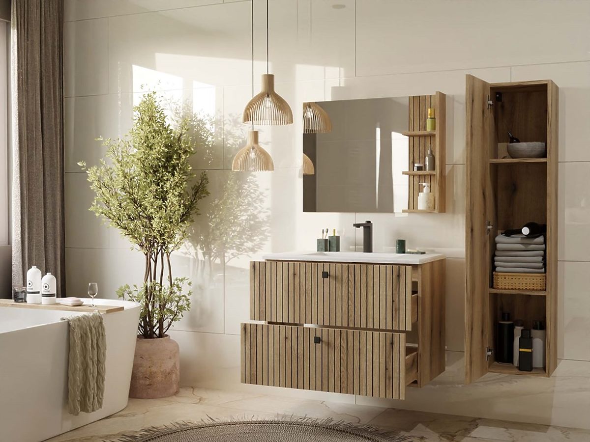 Lukahome.eu » Bathroom & Toilet / Bathrooms lockers / WALL-MOUNTED VANITY CABINET TIGO 80 2S OAK EVOKE 2 DRAWERS GROOVED FRONT PANEL