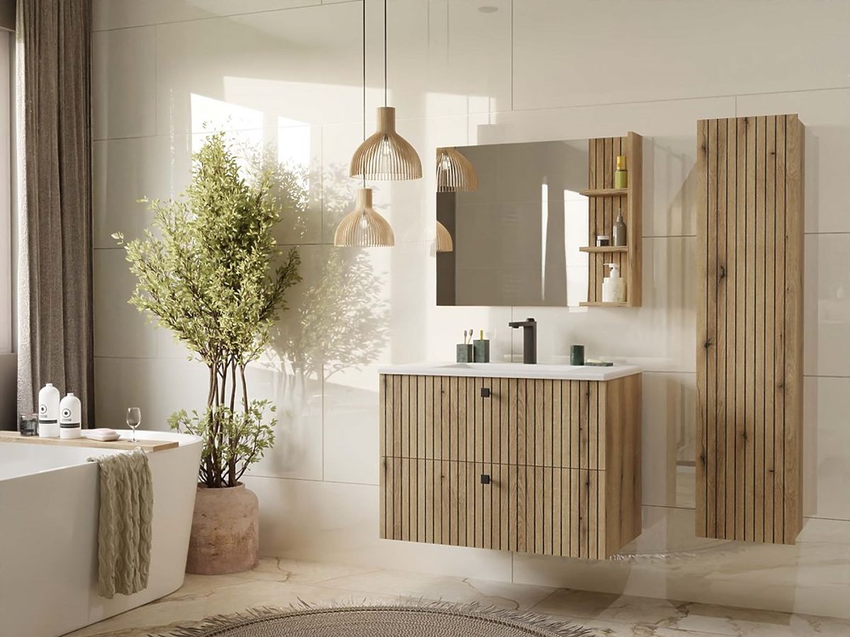 Lukahome.eu » Bathroom & Toilet / Bathrooms lockers / UNDER-SINK CABINET TIGO 80 2S EVOKE OAK GROOVED FRONT + SINK