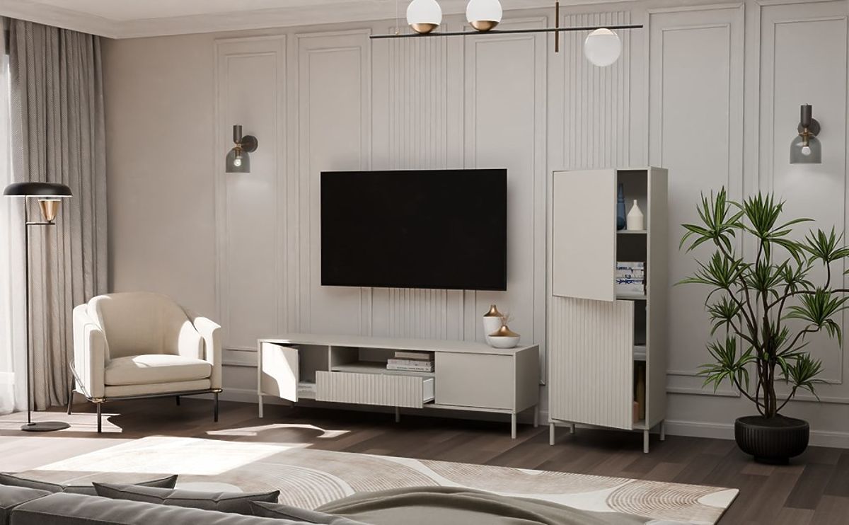 Lukahome.eu » Furniture / Commodes / Display Cabinet KAMARO 2DK SLIM/SMOOTH CASHMERE Louvered Grooved + Classic Front Panel