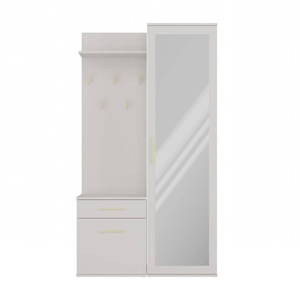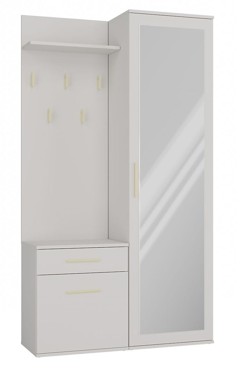 Wardrobe with mirror, cabinet, and coat rack can be mounted close together or separately.
