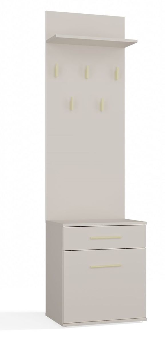 Wall-mounted coat rack with 5 hooks and a shelf for additional accessories