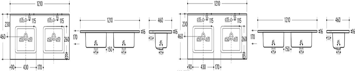 Rectangular double-chamber ceramic washbasin with high gloss finish. .. more