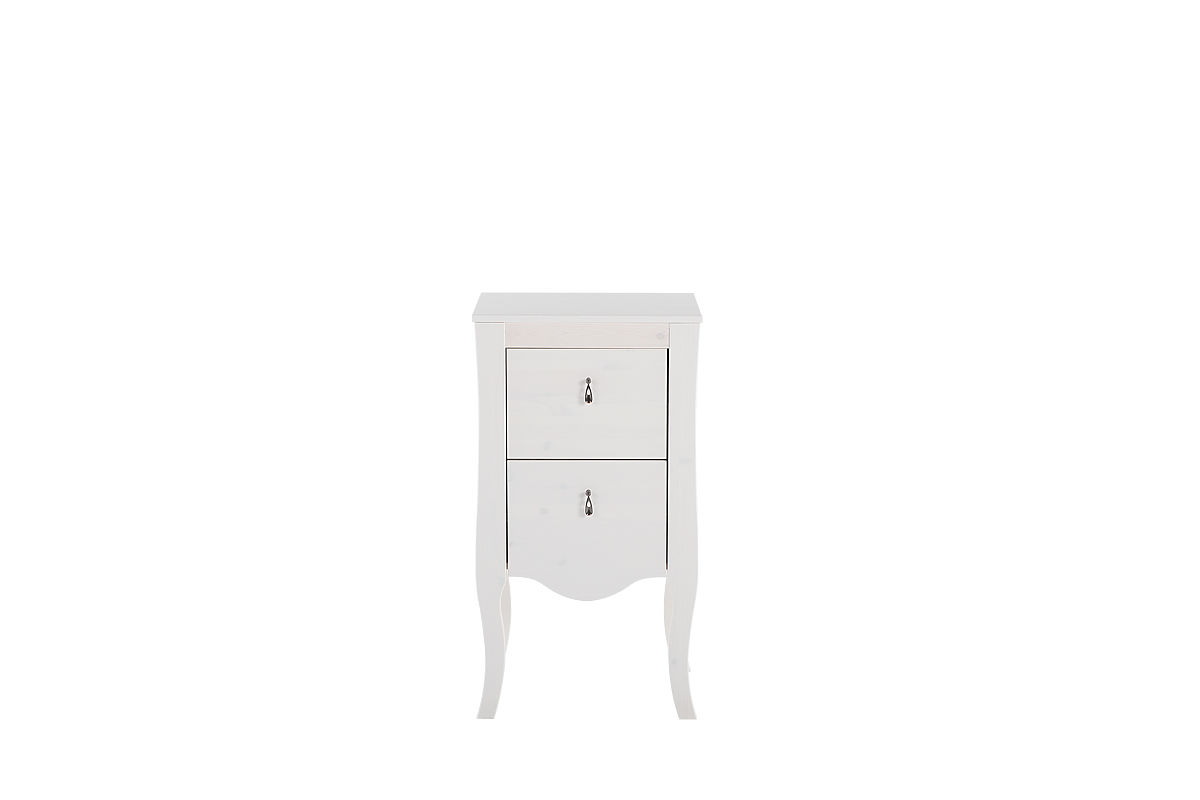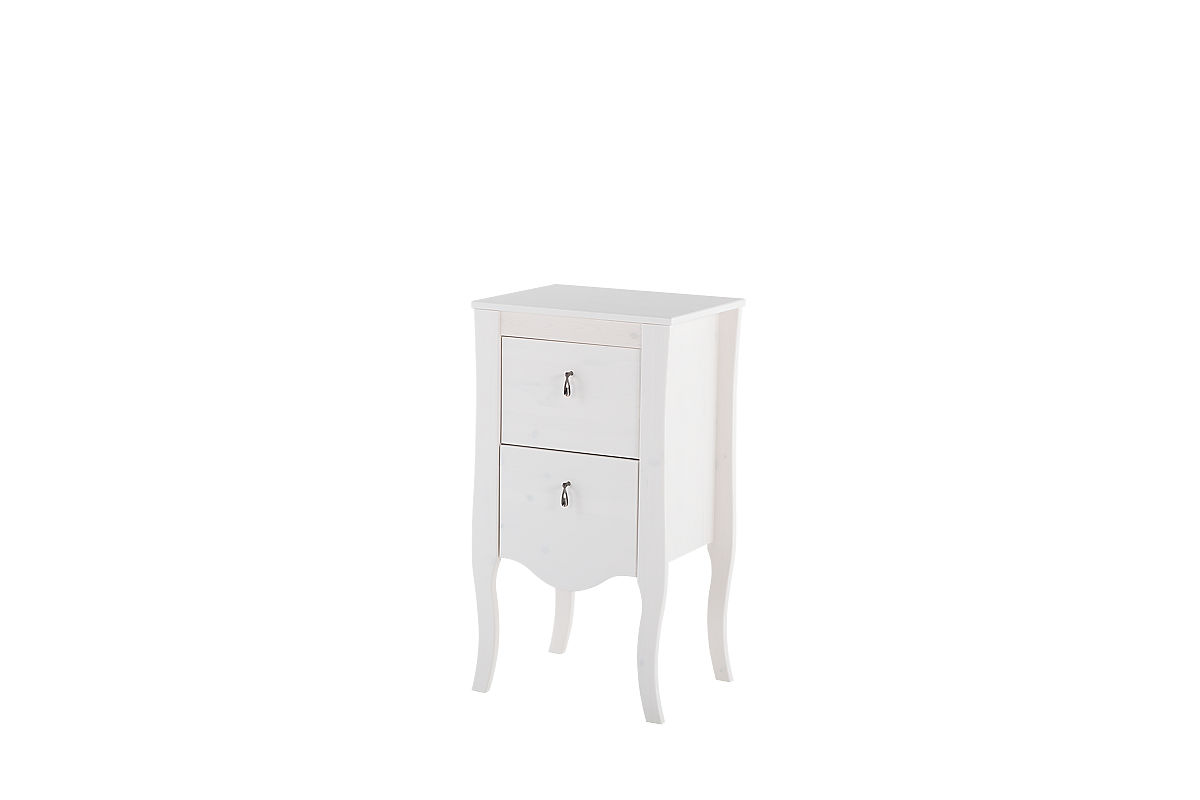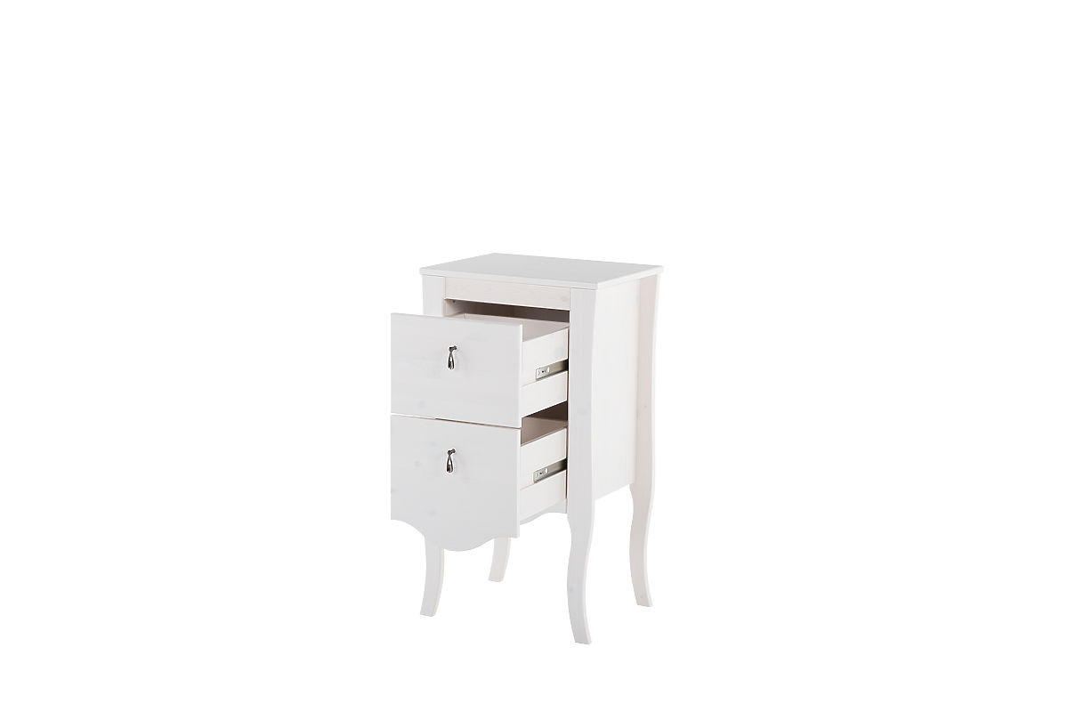 White pine wood side cabinet with two full-extension drawers. .. more