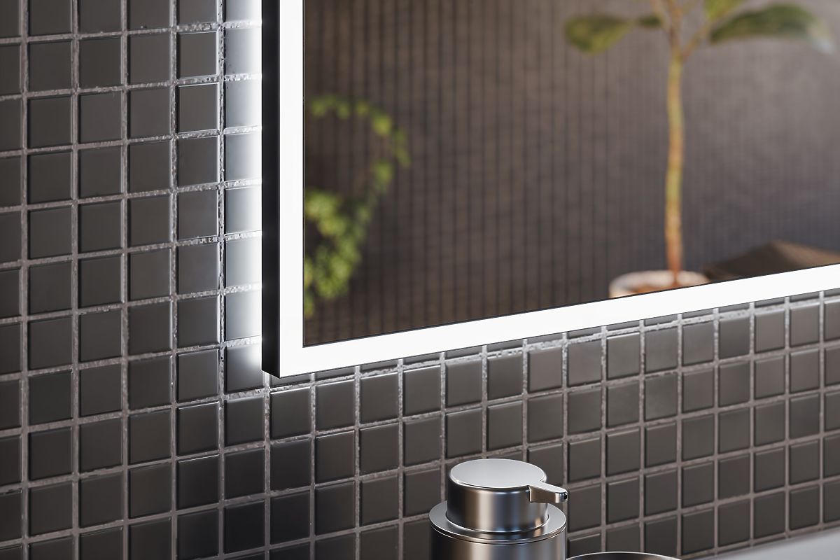 Rectangular LED mirror with a graphite frame and cold light. .. more