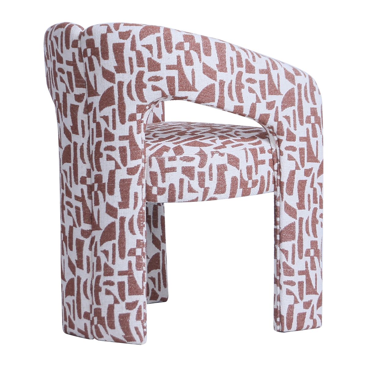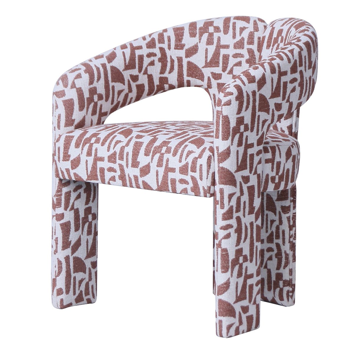 Upholstered chair with burgundy-brown fabric and unique arched shapes. .. more