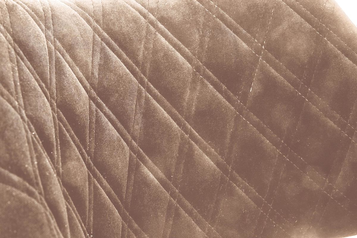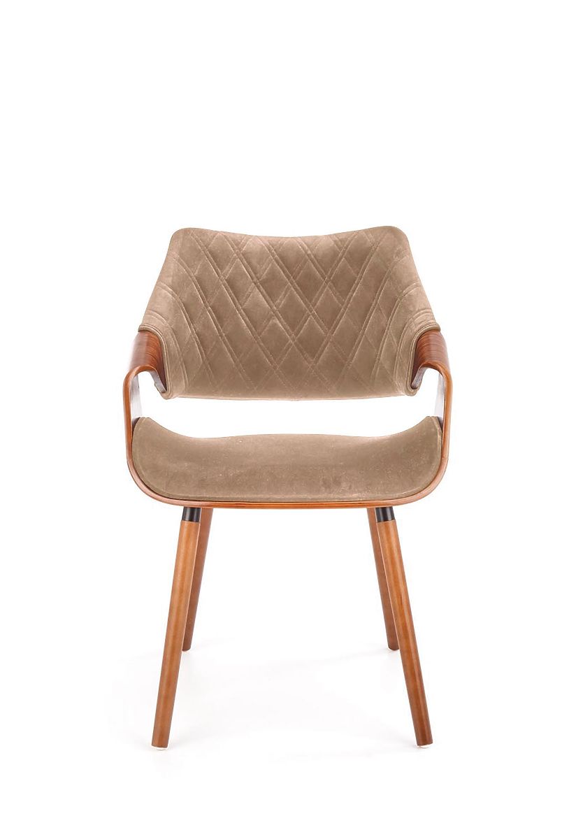 Walnut and beige chair made of plywood, fabric, and solid wood. .. more