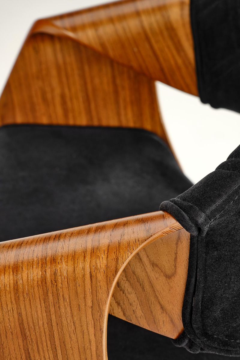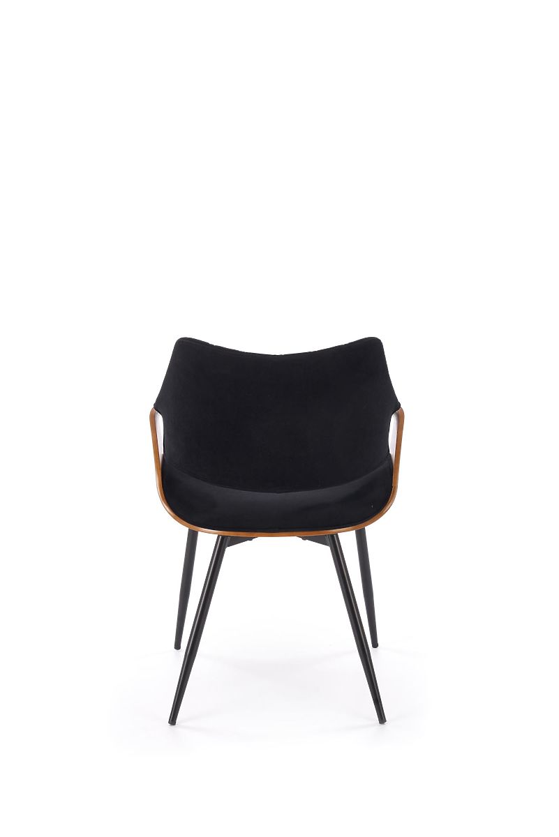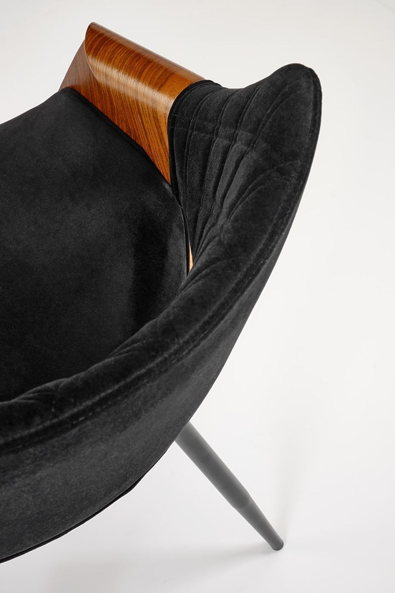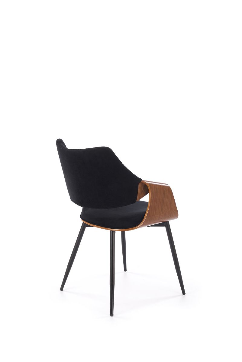 Walnut and black chair with velvet fabric and steel frame. .. more
