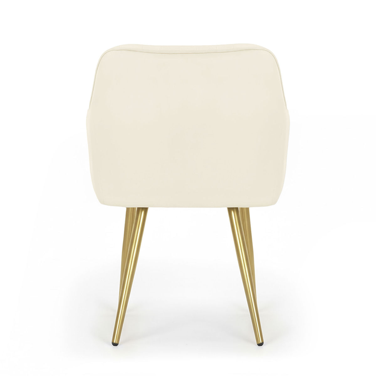 Velvet chair with vertical stitching and gold legs. .. more