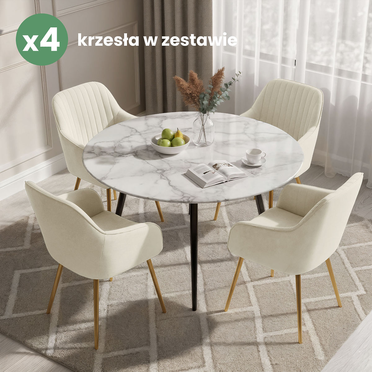 Lukahome.eu » Dining room a kitchen / Dining chair / 4x Velvet Upholstered Chair with Stitching Cream FLORENCE Gold Legs
