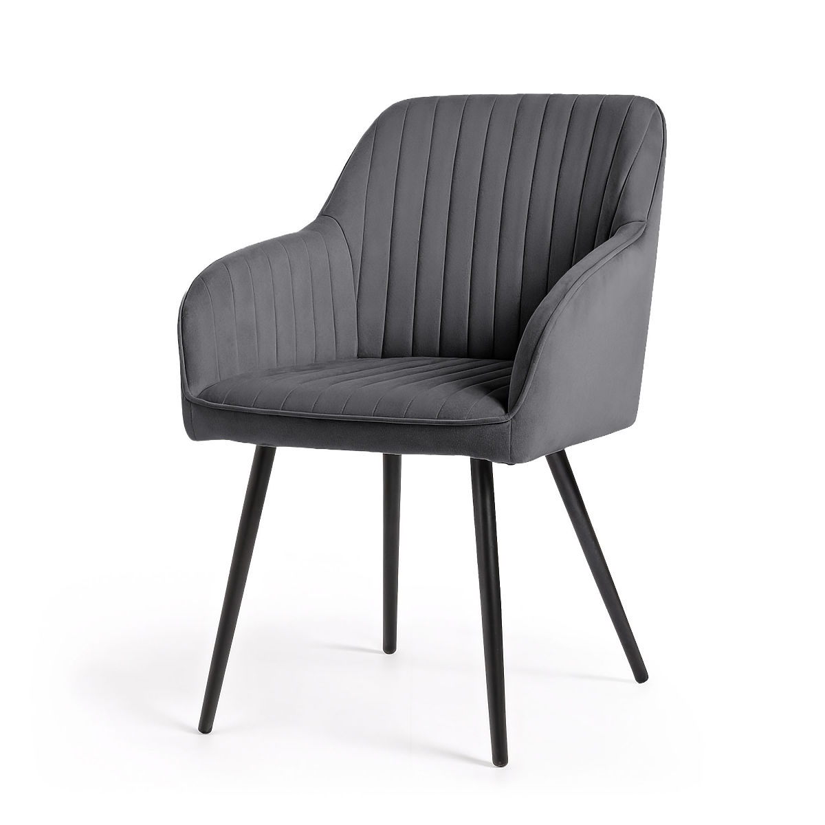 Velvet chair FLORENCE with vertical stitching and dark graphite color. .. more