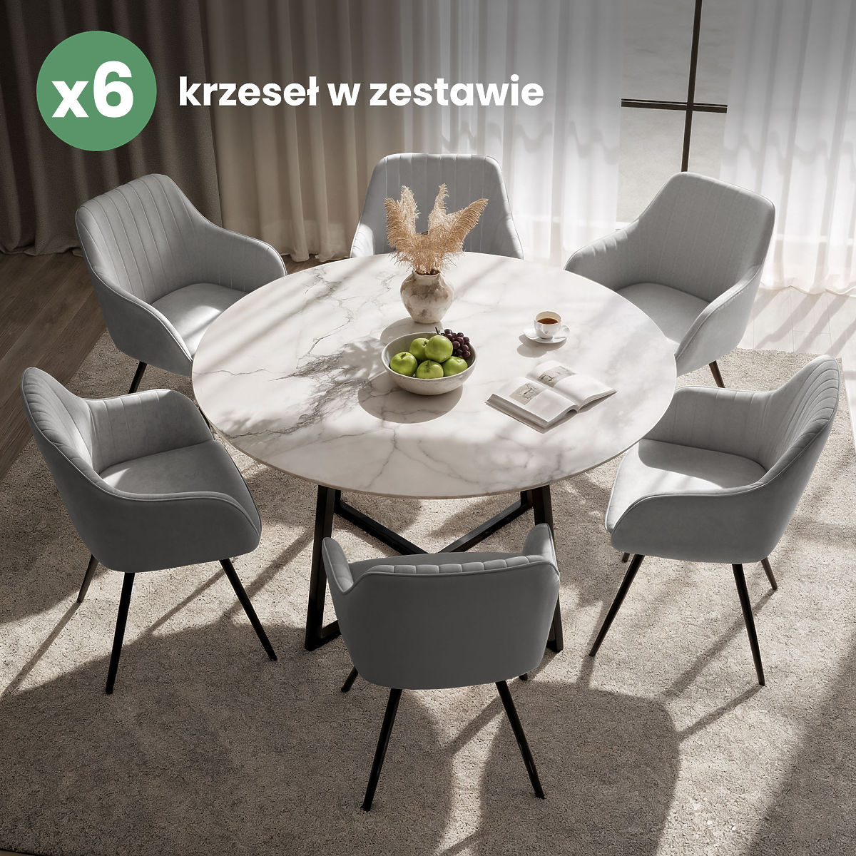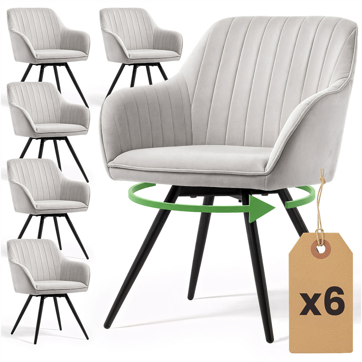 Lukahome.eu » Dining room a kitchen / Dining chair / 6x Velvet Swivel Chair with Stitching Gray TURNO Black Legs