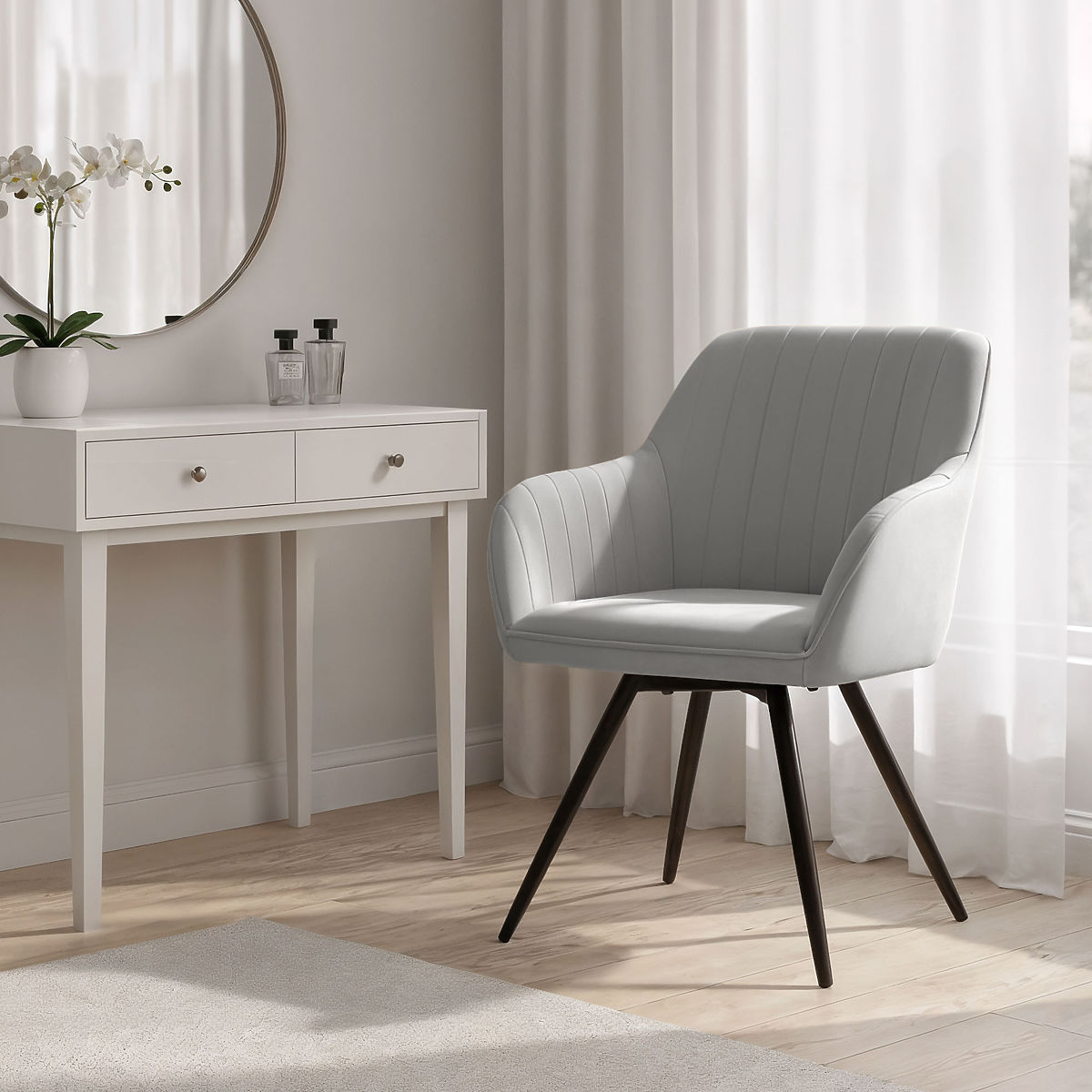 Swivel Chair TURNO is designed for lovers of modern, smart, and practical solutions. The chair rotates 360°, ensuring exceptional comfort during use. It is especially effective in small spaces - there's no need to move it away, meaning it takes up less space than a regular chair. Comfort while sitting is ensured by elegant velvet upholstery with vertical stitching and high-density foam filling. The TURNO swivel chair perfectly fits interiors in industrial, modern, or mid-century modern styles.