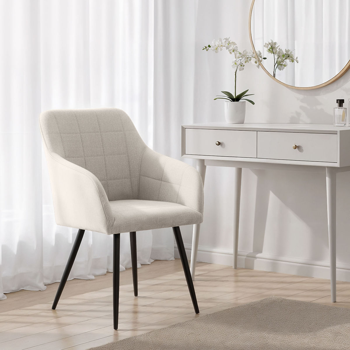Luxano chairs with cream Lumos fabric and black legs. .. more