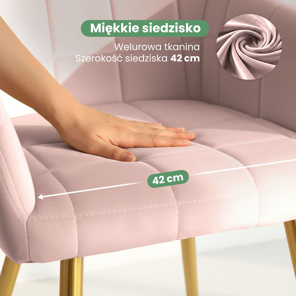 Lukahome.eu » Dining room a kitchen / Dining chair / 4x Upholstered Chair with Square Quilting Powder Pink LUXANO Gold Legs