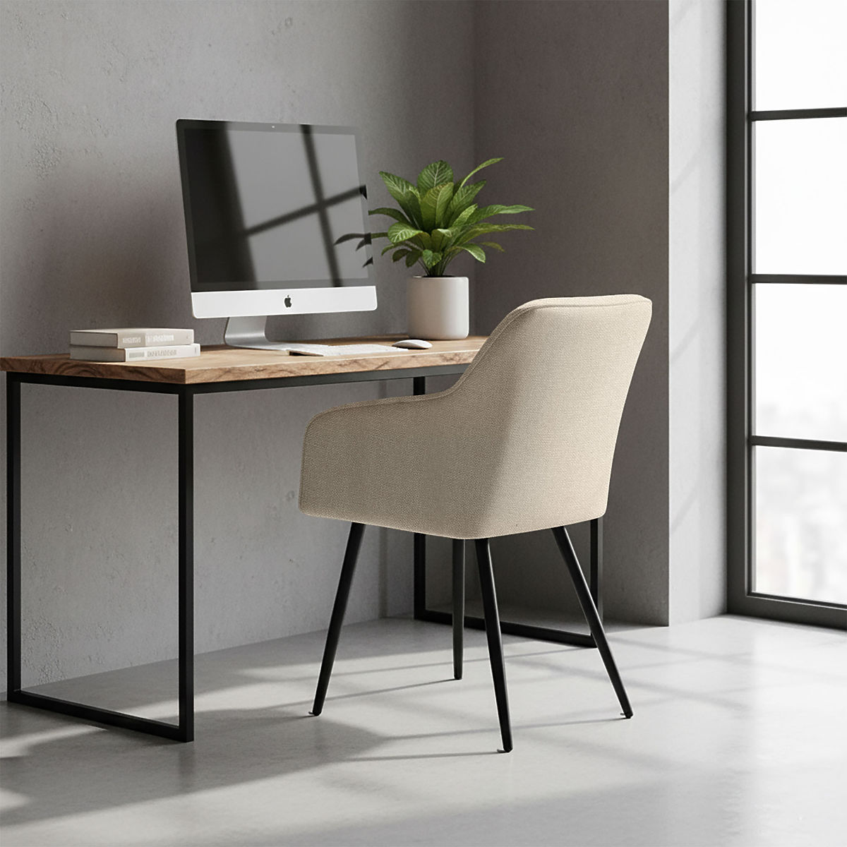 Lukahome.eu » Dining room a kitchen / Dining chair / 6x Upholstered Chair with Square Quilting Beige LUXANO Black Legs Lumos Fabric