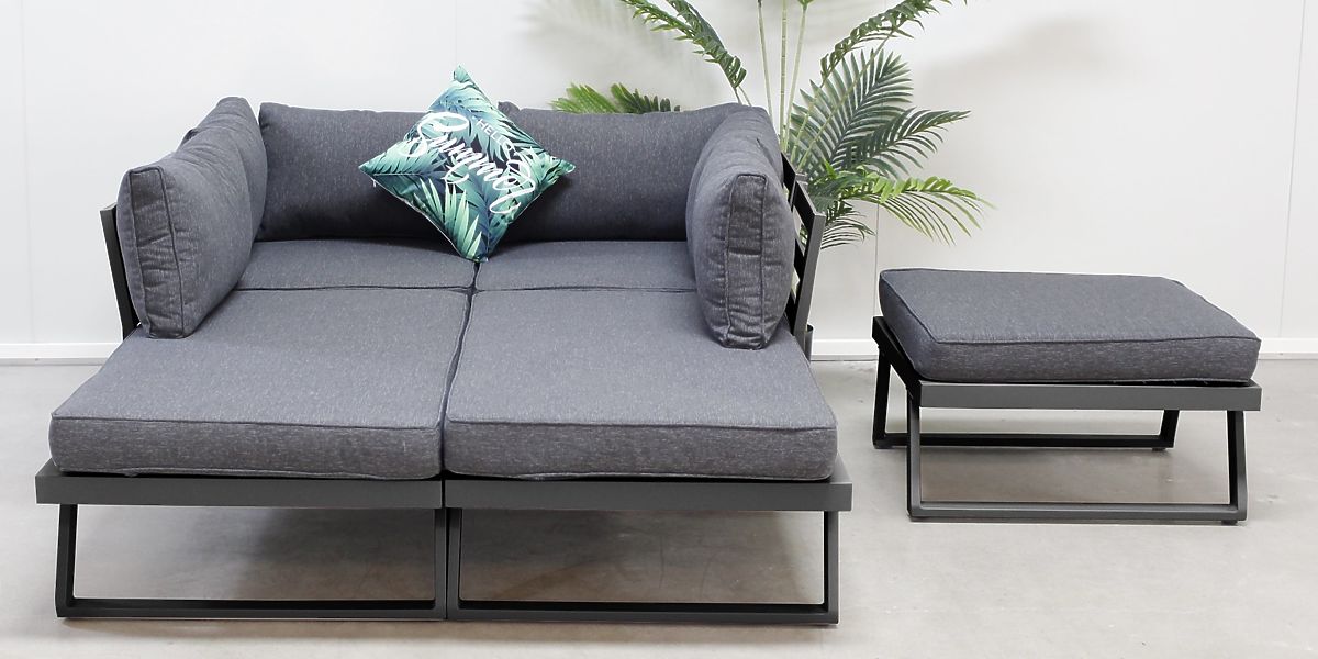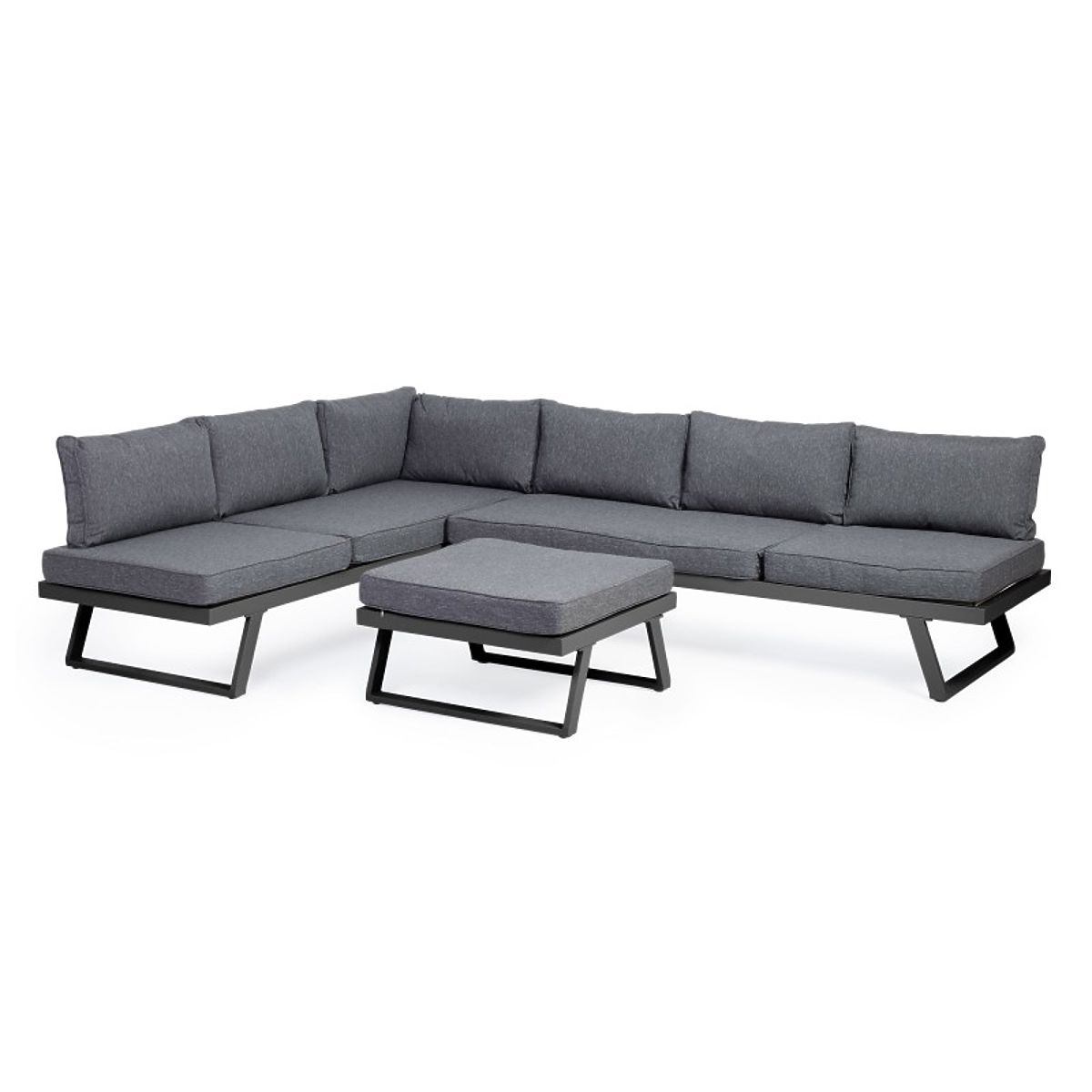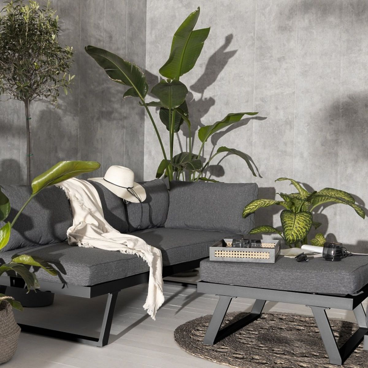 Lukahome.eu » Garden furniture / Garden sofas / Lafoole Lunge Garden Corner Sofa with Table, Spun-Poly, Dark Gray