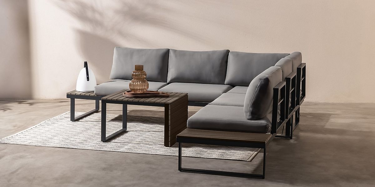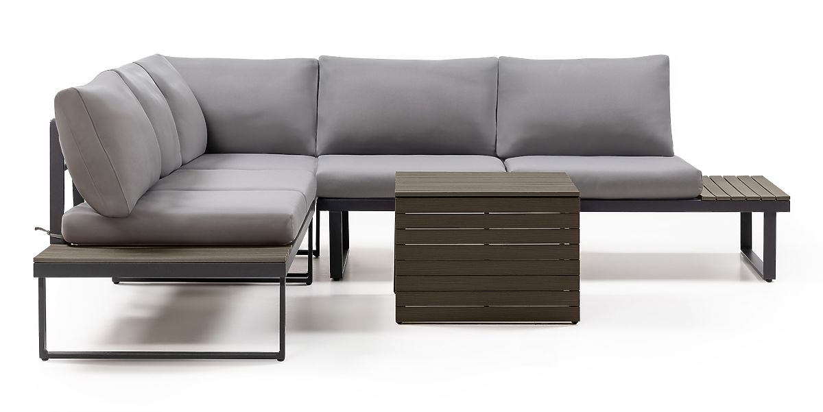 Garden corner sofa Valongo with multifunctional table and durable cushions. .. more