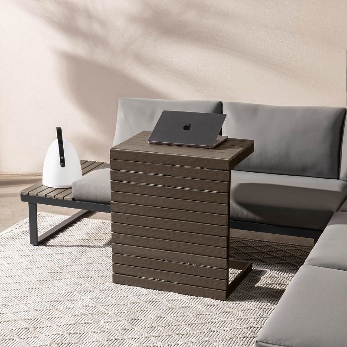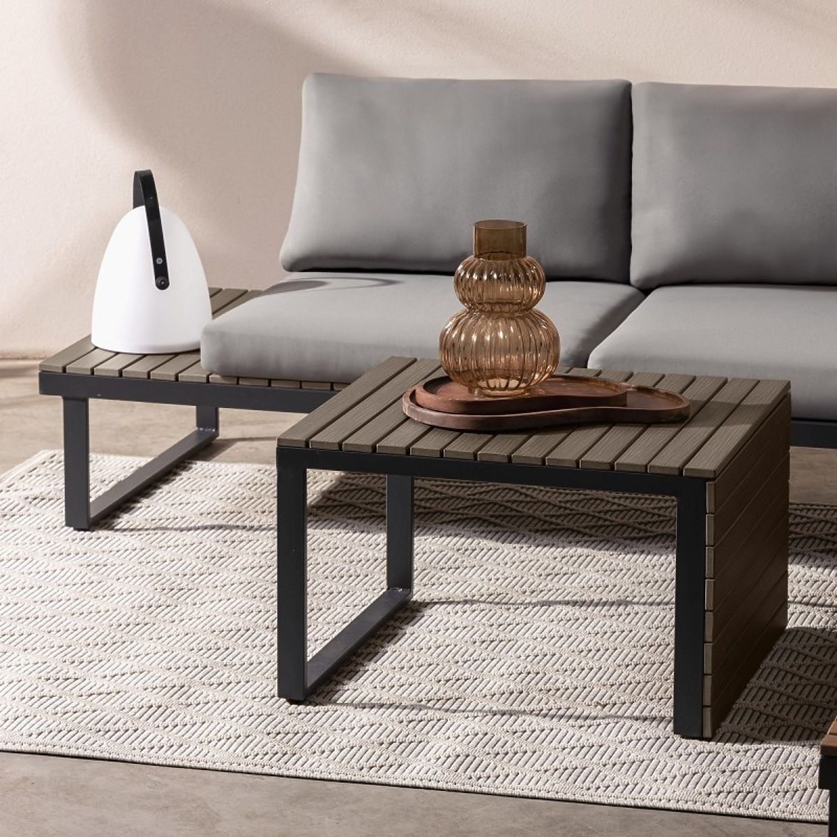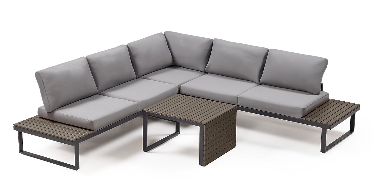 Lukahome.eu » Garden furniture / Garden sofas / Garden Corner Sofa with Table Valongo, Polywood, Spun-Poly, Light Grey/Anthracite