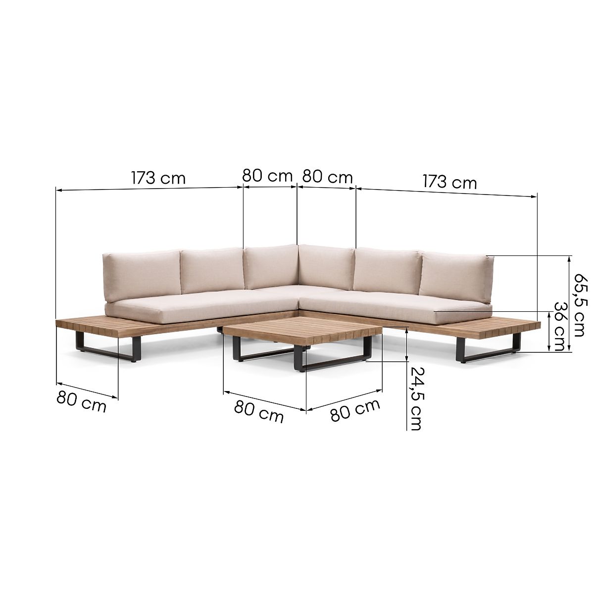 The Borgo corner sofa is a blend of exceptional design and functionality, a must-have for your garden. Made from a sturdy, powder-coated aluminum frame and durable acacia wood, it ensures not only an aesthetic appearance but also durability for many seasons. Comfort is a key element of any outdoor relaxation, which is why the Borgo corner sofa comes with soft cushions with removable covers. The fabric used has hydrophobic properties, but to maintain its durability, we recommend storing it in a sheltered place during rain. An added advantage is the included table and practical shelves at the ends of the sofa, providing extra space for your favorite book, coffee, or snack. It is important to highlight that the wood used in the set is FSC® certified, sourced from forests managed according to sustainable development principles. This way, you not only invest in comfort but also care for the future of our planet. Furniture made from natural wood retains its characteristic features, so all irregularities, abrasions, scratches, knots, cracks, gaps, holes, depressions, uneven edges, various patterns, color differences, and other irregularities in the structure are intentionally preserved during the manufacturing process. These features emphasize the authenticity of the material, giving each of our products a unique character, which may lead to differences in appearance compared to the presented photos. To maintain the furniture in perfect condition for a long time, it is recommended to store it in a dry and ventilated place under a shelter during the winter, ensuring protection from weather conditions.