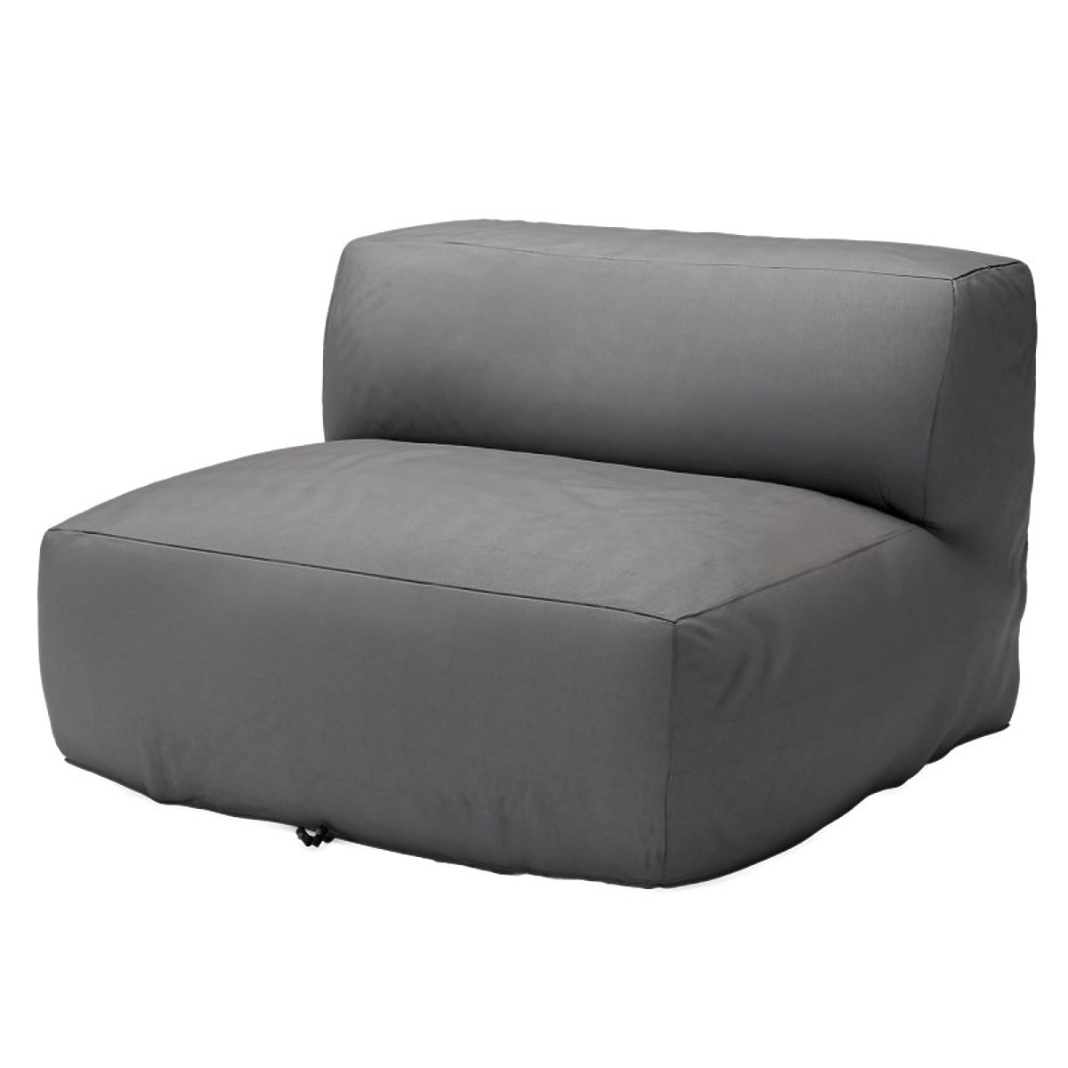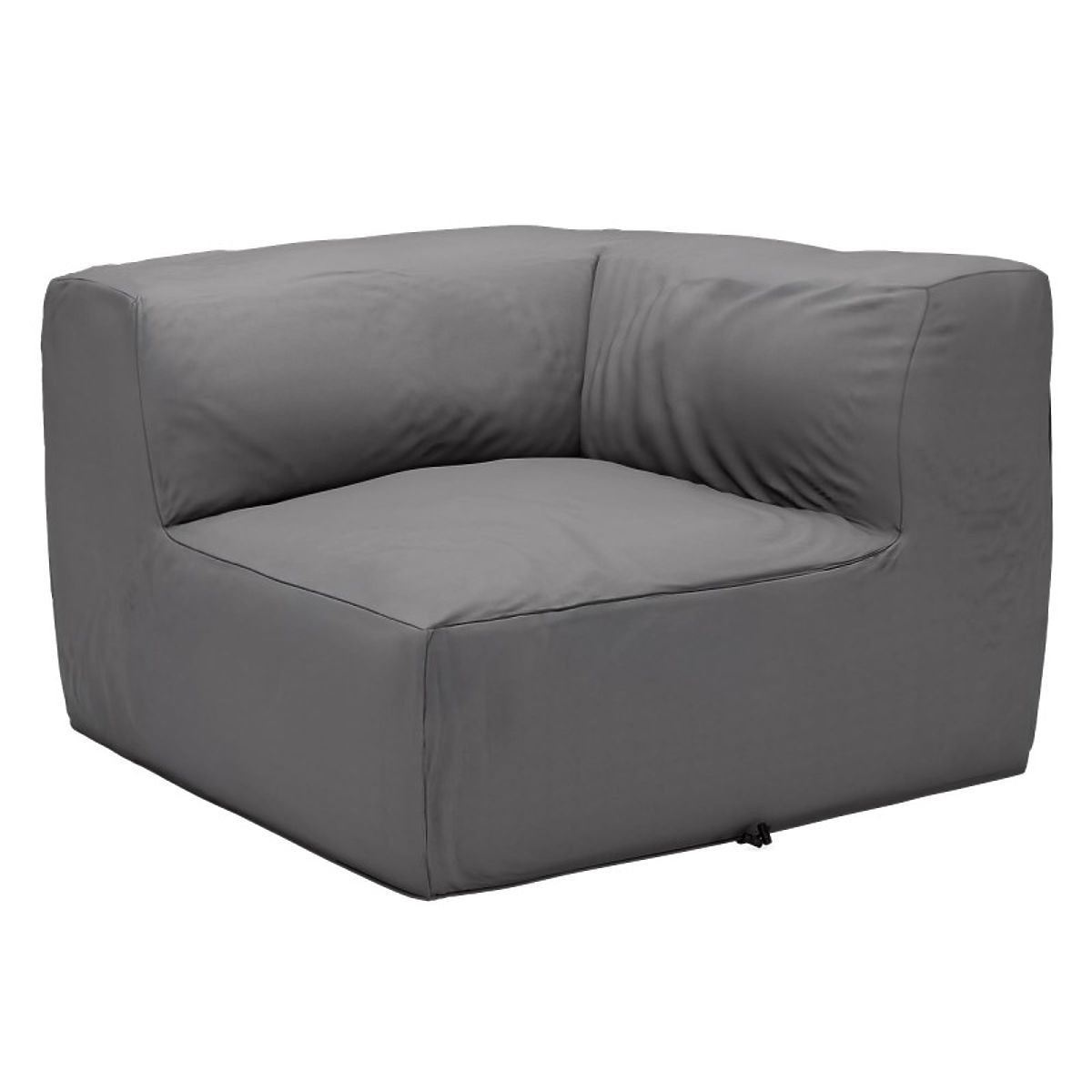Modular garden corner sofa with water-resistant gray fabric cover. .. more