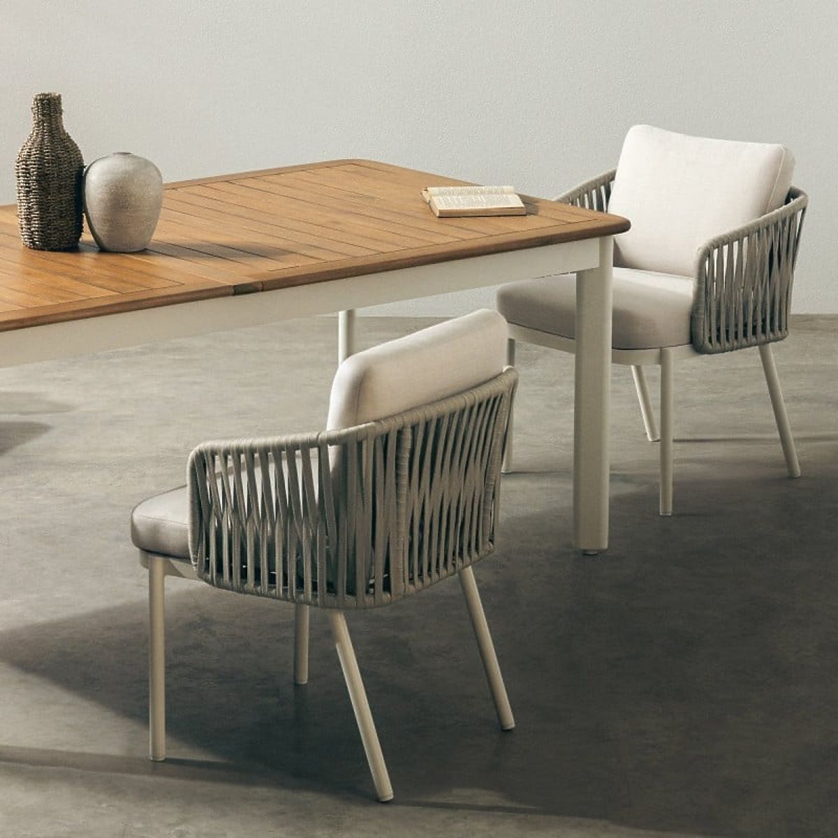 Porticato garden set with extendable table and 6 chairs in teak look. .. more