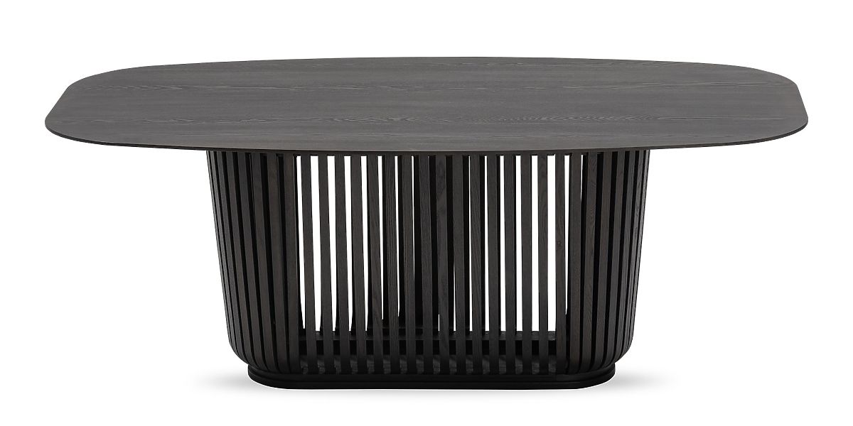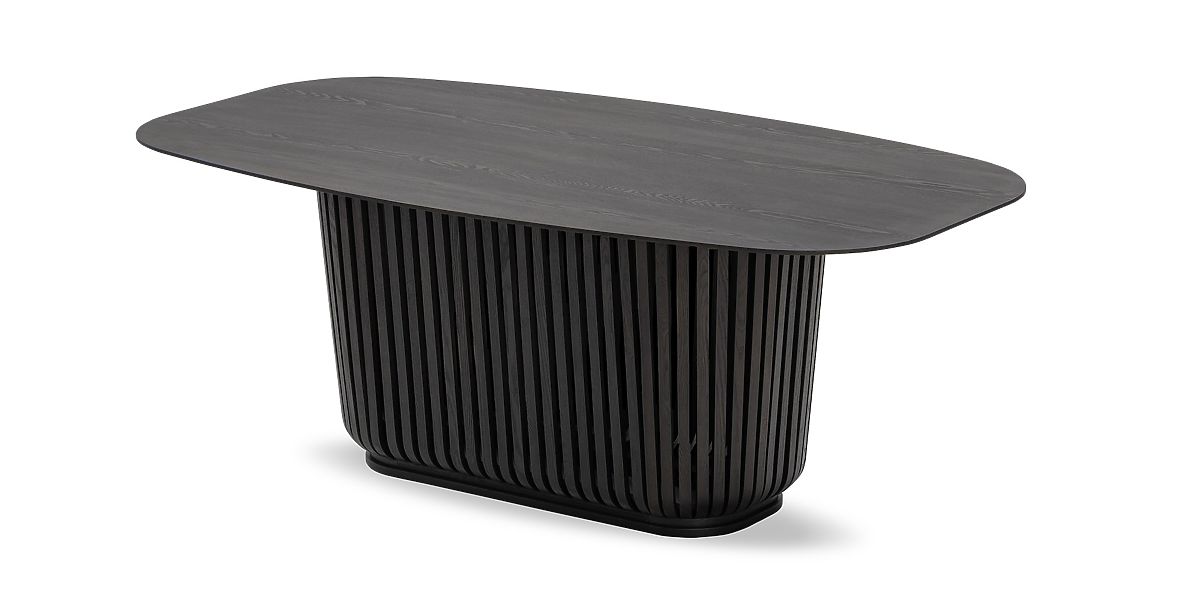 Dining table Araia with black ash veneer and decorative slats. .. more
