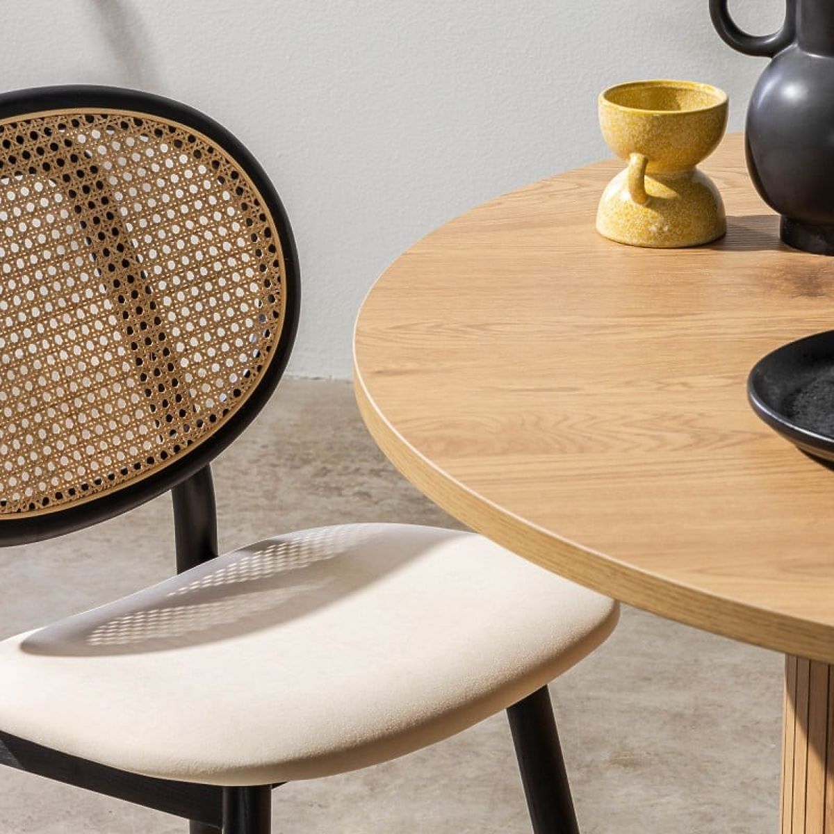 Lukahome.eu » Dining room and kitchen / Dining chairs / Wooden Chair Monet with Viennese Weave, Rattan, Velvet, Black/Beige