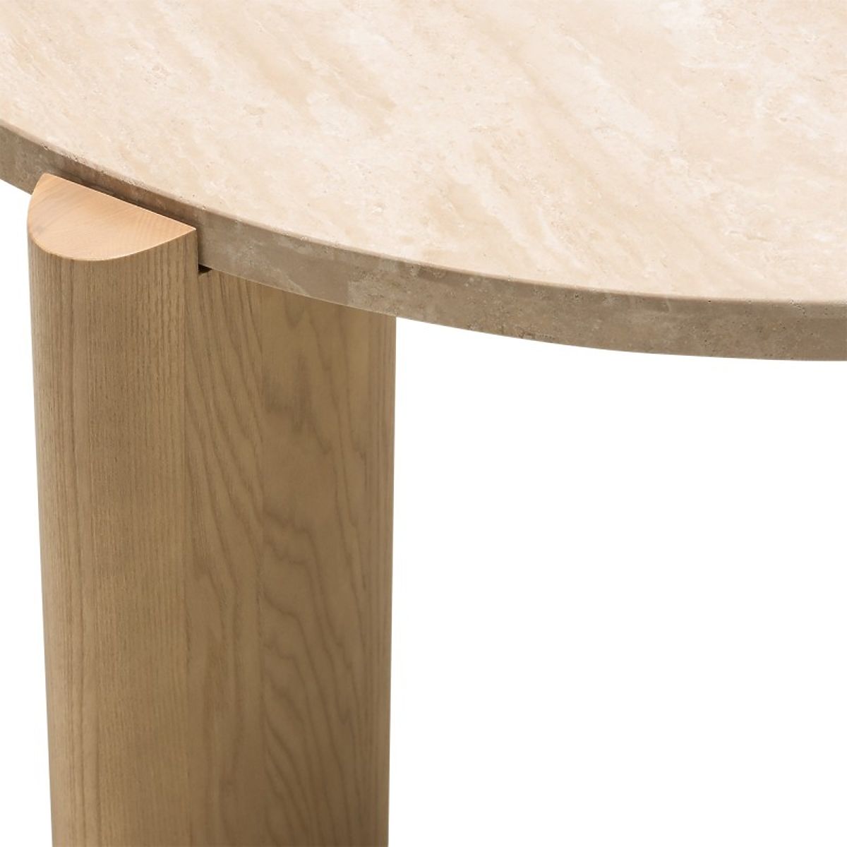 Round travertine top with solid ash legs, 90 cm diameter. .. more
