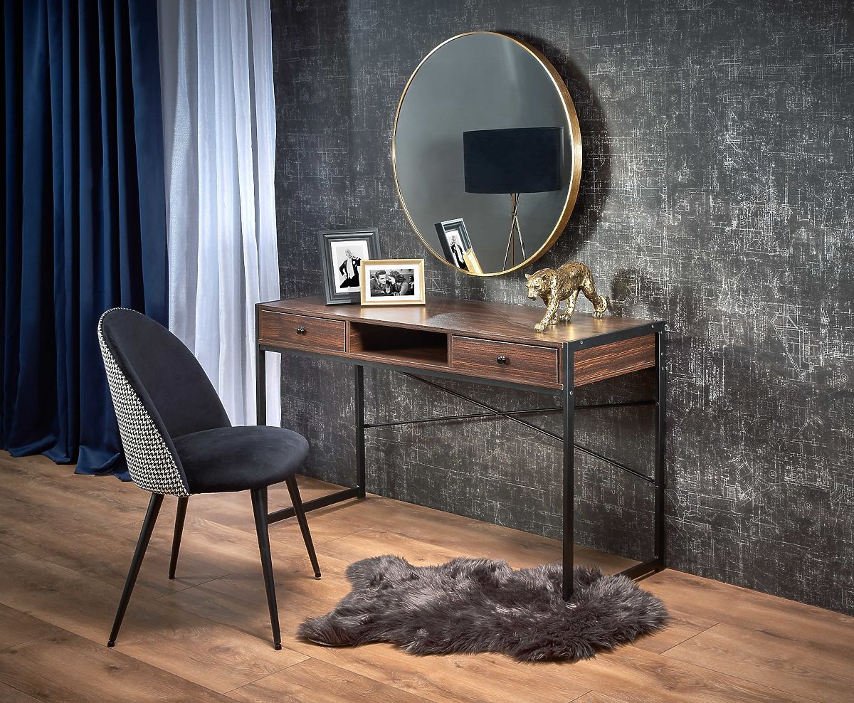 Walnut and black desk with laminated board and steel. .. more