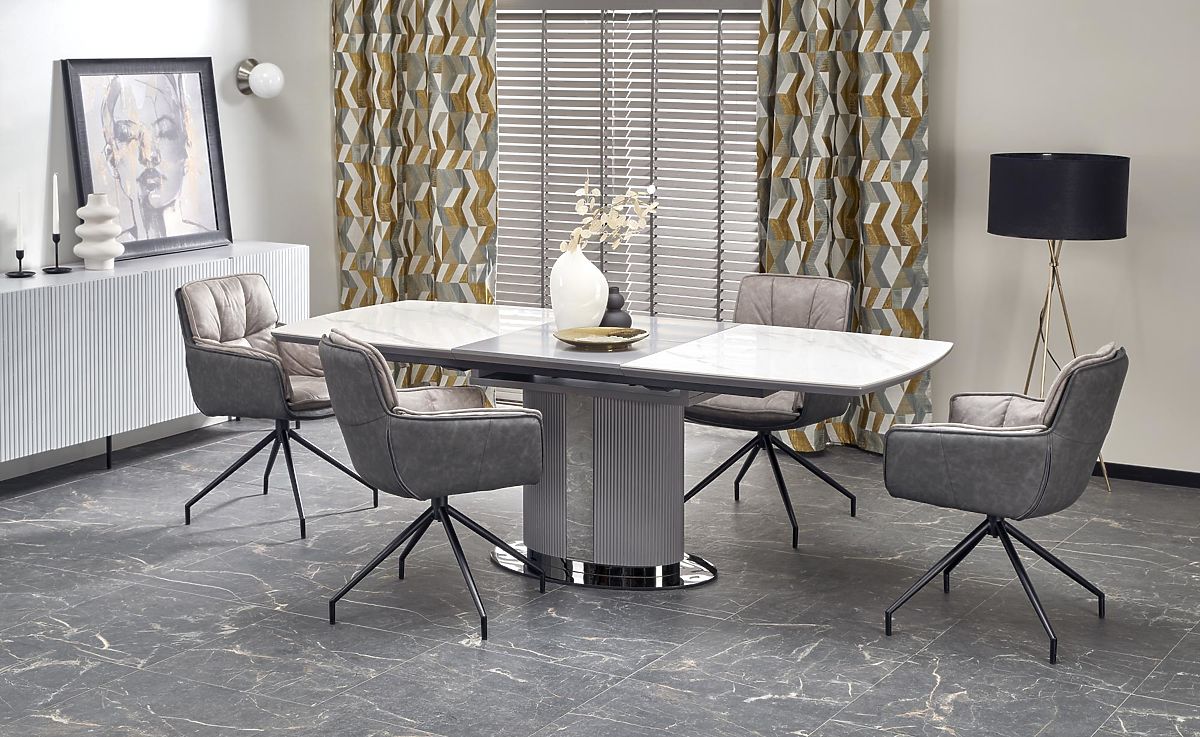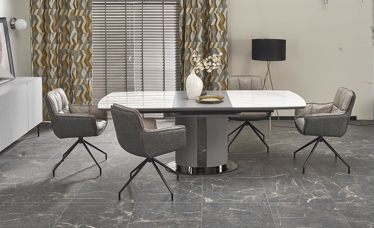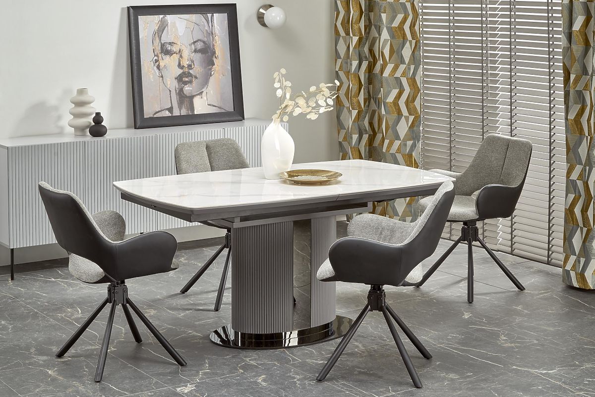 Lukahome.eu » Dining room and kitchen / Dining tables / DANCAN Extendable Table, White Marble / Gray / Light Gray / Black (3p=1pc)