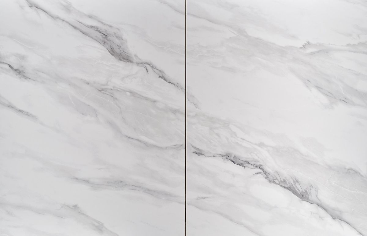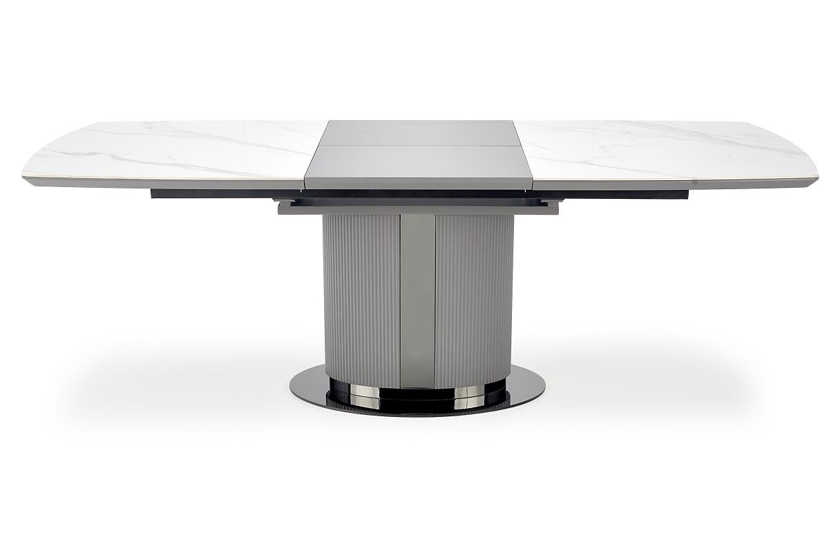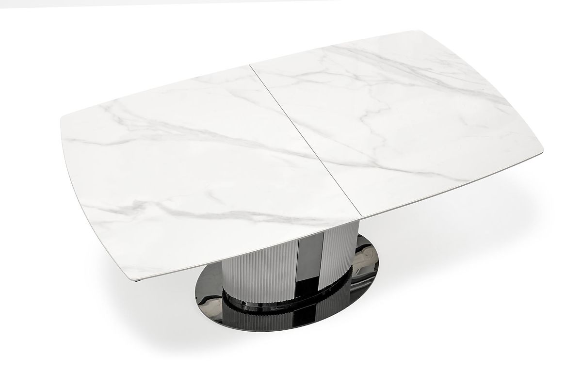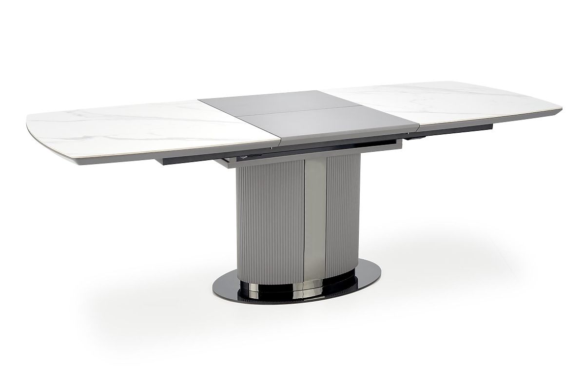 Extendable table with ceramic top in white marble or gray. .. more