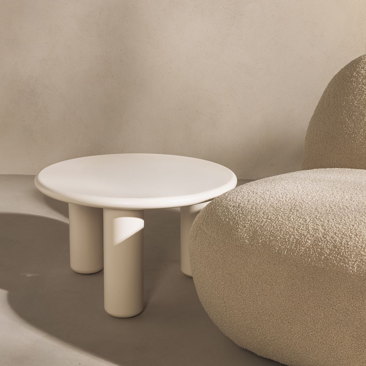 Elegant cream coffee table with a matte finish and rounded edges. .. more