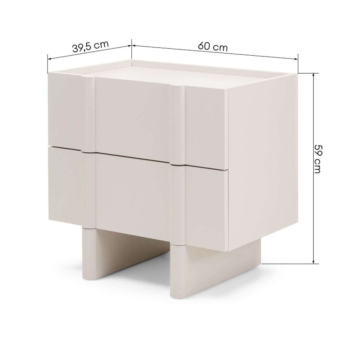 Moss nightstand in cashmere with two push-to-open drawers. .. more