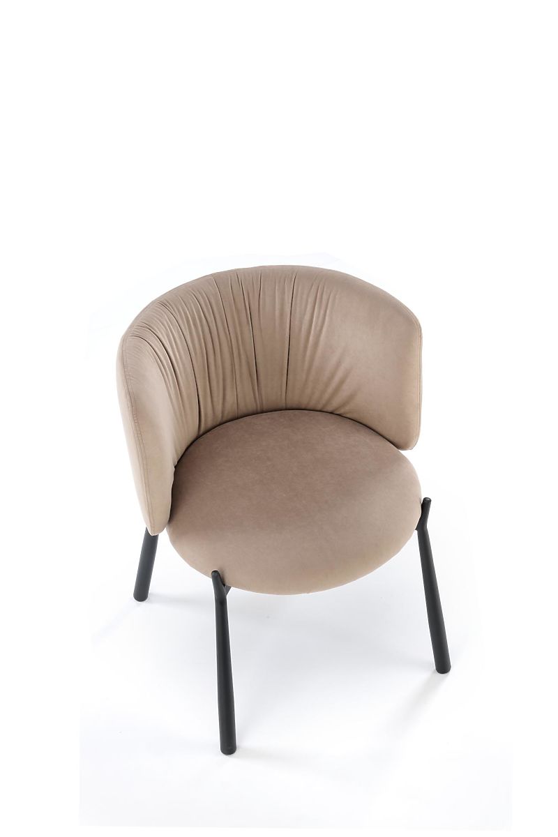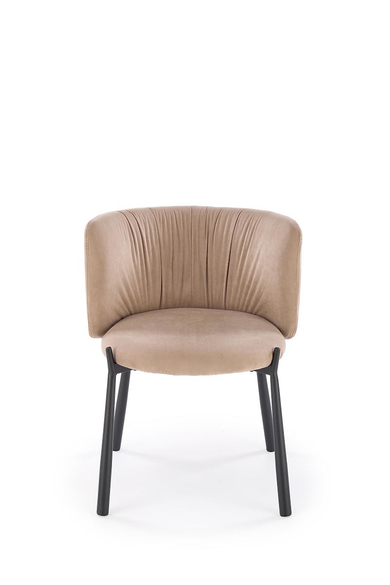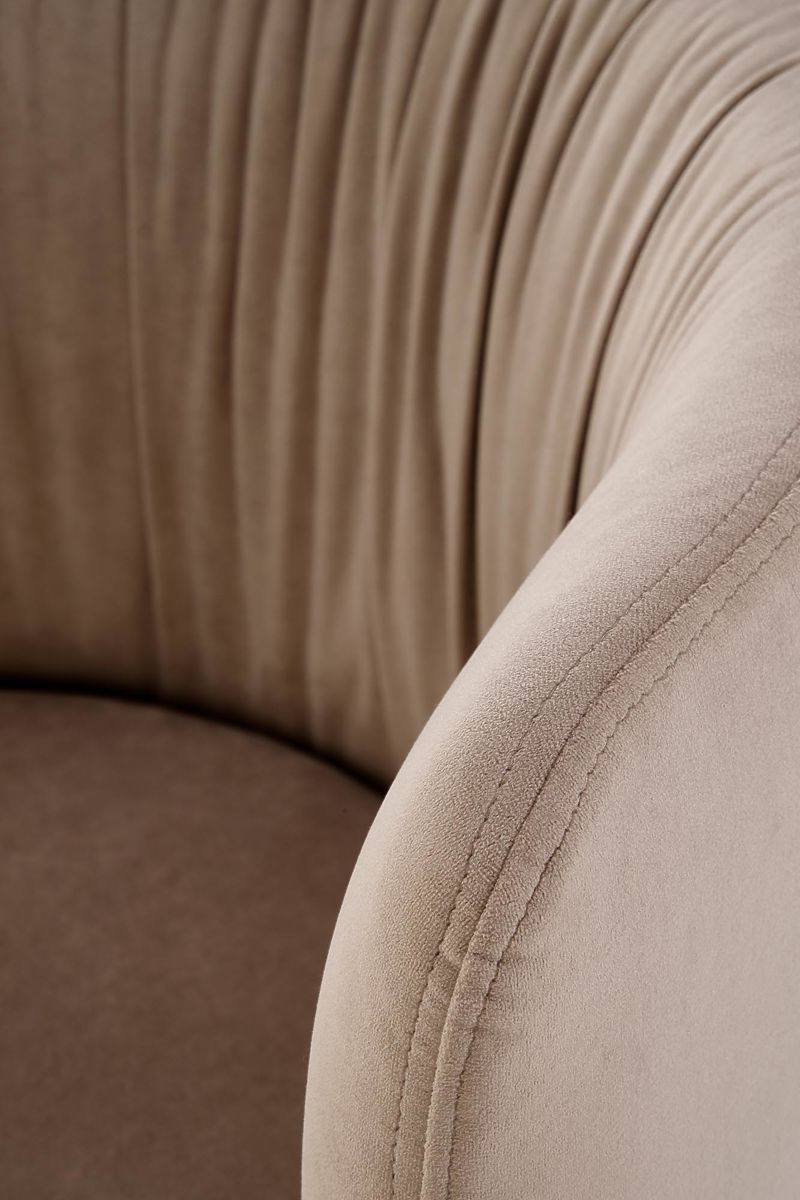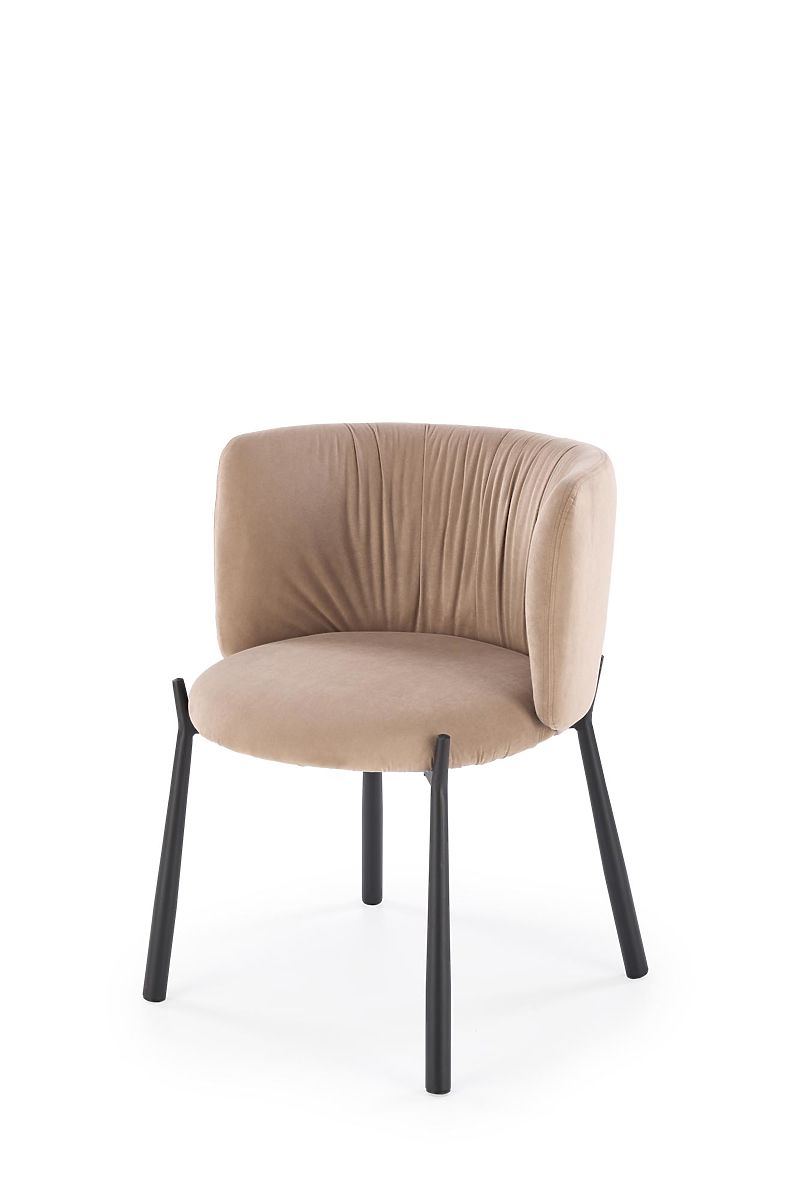 Beige velvet chair with powder-coated steel frame. .. more