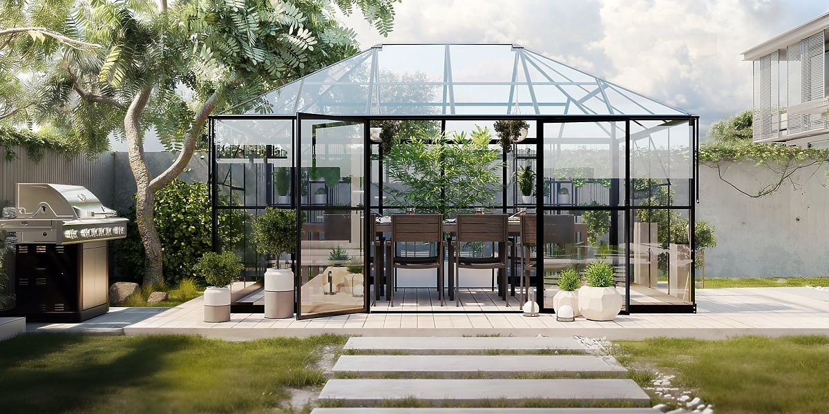 Solid and Reliable Construction The ProGlass Gazebo Standard orangery is designed with durability and functionality in mind. Its solid aluminum structure, with a thickness of 1-1.8 mm, is reinforced with stainless steel screws, and additional stability is provided by a galvanized steel base with a height of 12 cm. A durable gutter system with four aluminum downpipes allows for efficient rainwater drainage and collection - an eco-friendly irrigation source. Two tilt windows and double doors ensure proper ventilation, which is crucial for healthy plant growth and comfortable stay in the orangery. A low threshold at the entrance facilitates the entry and bringing in of equipment, such as a lawnmower or wheelbarrow. Tempered Glass – Exceptional Durability and Safety The roof and walls of the ProGlass Gazebo Standard are made of 4 mm thick tempered glass, which allows an abundance of natural light, creating ideal conditions for plant growth. Due to its unique properties and manufacturing process, tempered glass is much more resistant to impacts than ordinary glass or plastic. The tempering process involves heating the glass to a very high temperature (about 600°C) and then rapidly cooling it, creating external and internal stress layers that enhance its resistance. In the event of impact, the surface compressive stress makes it difficult for cracks to form and spread. Conversely, the internal tensile stress absorbs and disperses the force within the glass, reducing the risk of damage. Unlike ordinary glass, tempered glass has a more cohesive internal structure, increasing its durability. Moreover, even if tempered glass breaks, it shatters into small, relatively harmless pieces, rather than sharp, jagged shards. Easy and Quick Assembly The ProGlass Gazebo Standard is an orangery that you can assemble in no time. Thanks to practical joints and pre-installed nuts, assembly is intuitive and quick, saving time and energy. Space for Relaxation and Health The ProGlass Gazebo Standard orangery is more than just a place for growing plants – it's your personal oasis of tranquility. Equipped with comfortable furniture, it becomes an ideal nook for relaxation or gatherings with loved ones. Being around greenery improves mood, relaxes, and brings harmony to everyday life. With the ProGlass Gazebo Standard, you can enjoy a piece of summer even on cooler days, surrounded by the natural beauty of plants. The structure is covered by a 15-year warranty, provided it remains in its original condition - without intentional damage, modifications, or external forces influence.