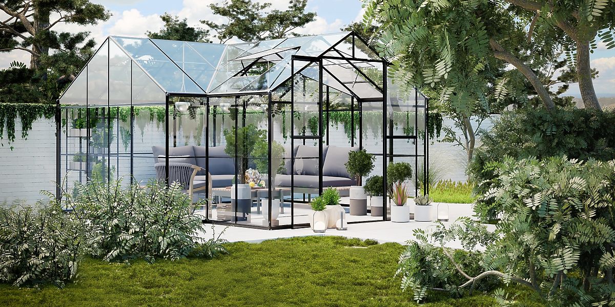Lukahome.eu   »   Gardens   /   Greenhouses and greenhouses   /   Garden Orangery Royal Green Standard 16.6 m² with Base, Tempered Glass 4 mm, Aluminum, Black