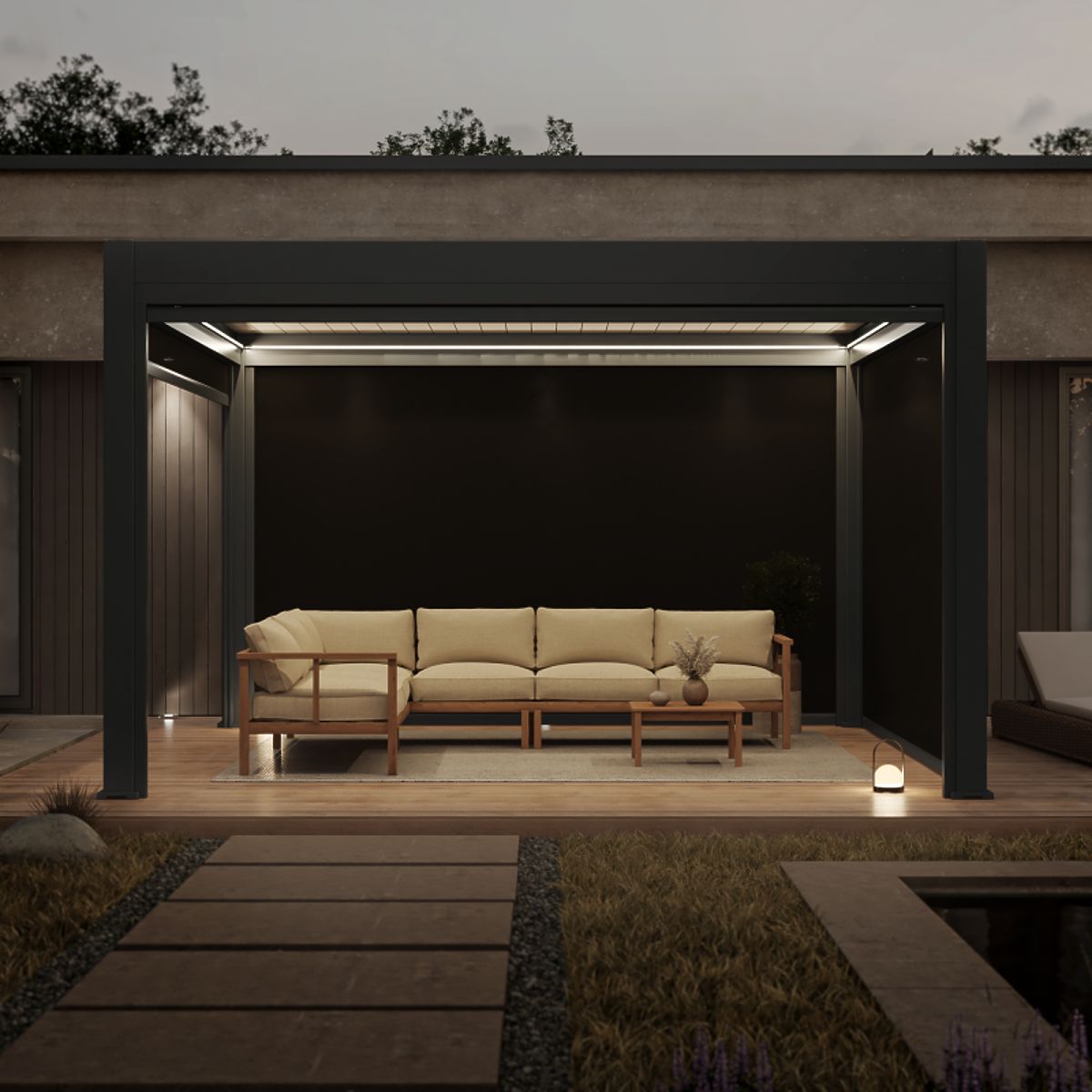 Lukahome.eu » Gardens / Gazebos / Freestanding Garden Pergola Lumera from Aluminum, 4x4 m, Bioclimatic, LED Lighting, Electric