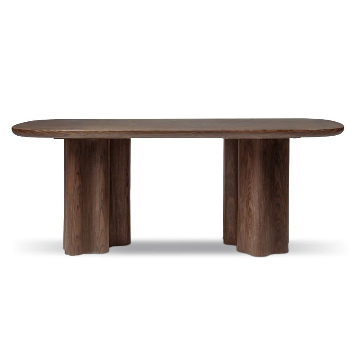 Spacious 200 cm table with dark walnut veneer and unique leg design. .. more