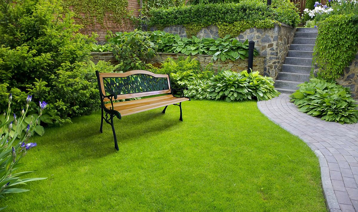 Classic Tulip garden bench with cast iron legs and wooden seat. .. more