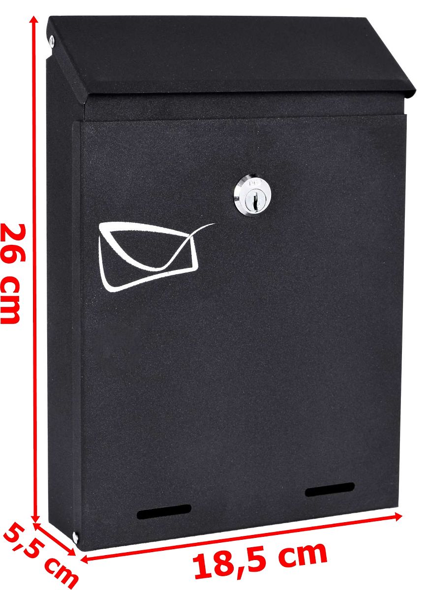 The modern and functional Odvin anthracite mailbox, designed with durability and elegance in mind. Its compact dimensions of 26 x 18.5 x 5.5 cm and a letter slot of 18 x 2 cm make it ideal for smaller spaces. Made from durable galvanized steel with a powder coating, suitable for both outdoor and indoor installation. Secure with a key lock – the set includes 2 keys and mounting elements. Solidity and style in one!