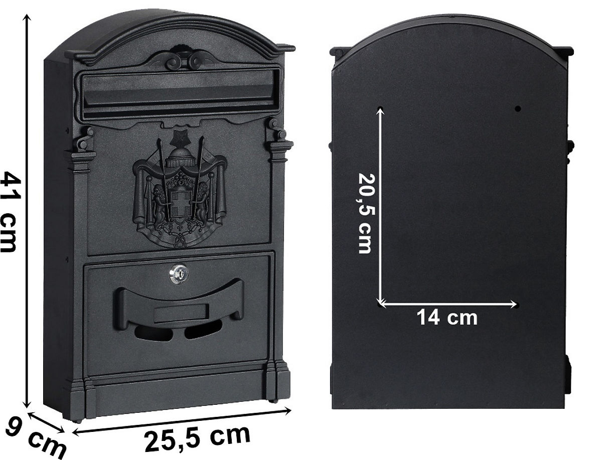 Practical mailbox made of galvanized steel coated with powder paint. A timeless style that cannot be overlooked. The mailbox features a wide slot and a clear window for the street name. Made from high-quality materials resistant to weather conditions, ensuring all correspondence is very well protected. The front of the mailbox has two small holes, making it easy to see if there is any mail waiting for us.