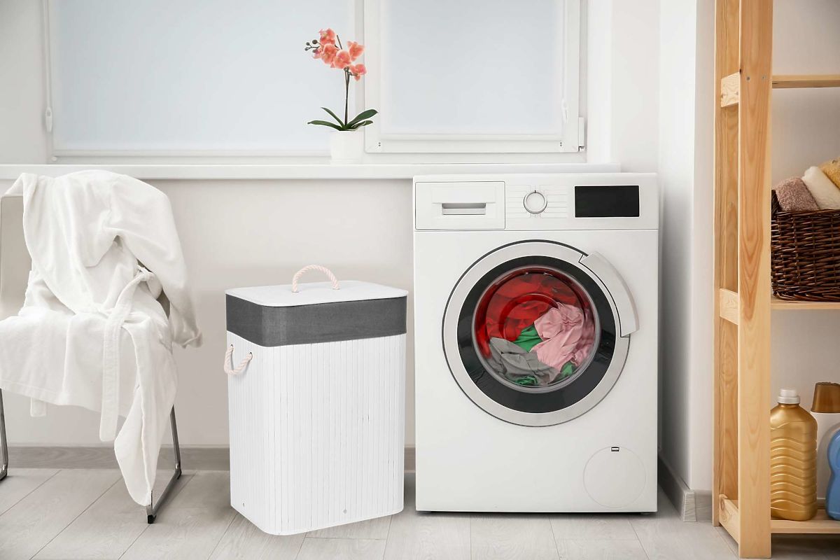 Lukahome.eu   »   Bathroom and toilet   /   Bathroom accessories   /   Bamboo Laundry Basket with Lid 80L White-Grey