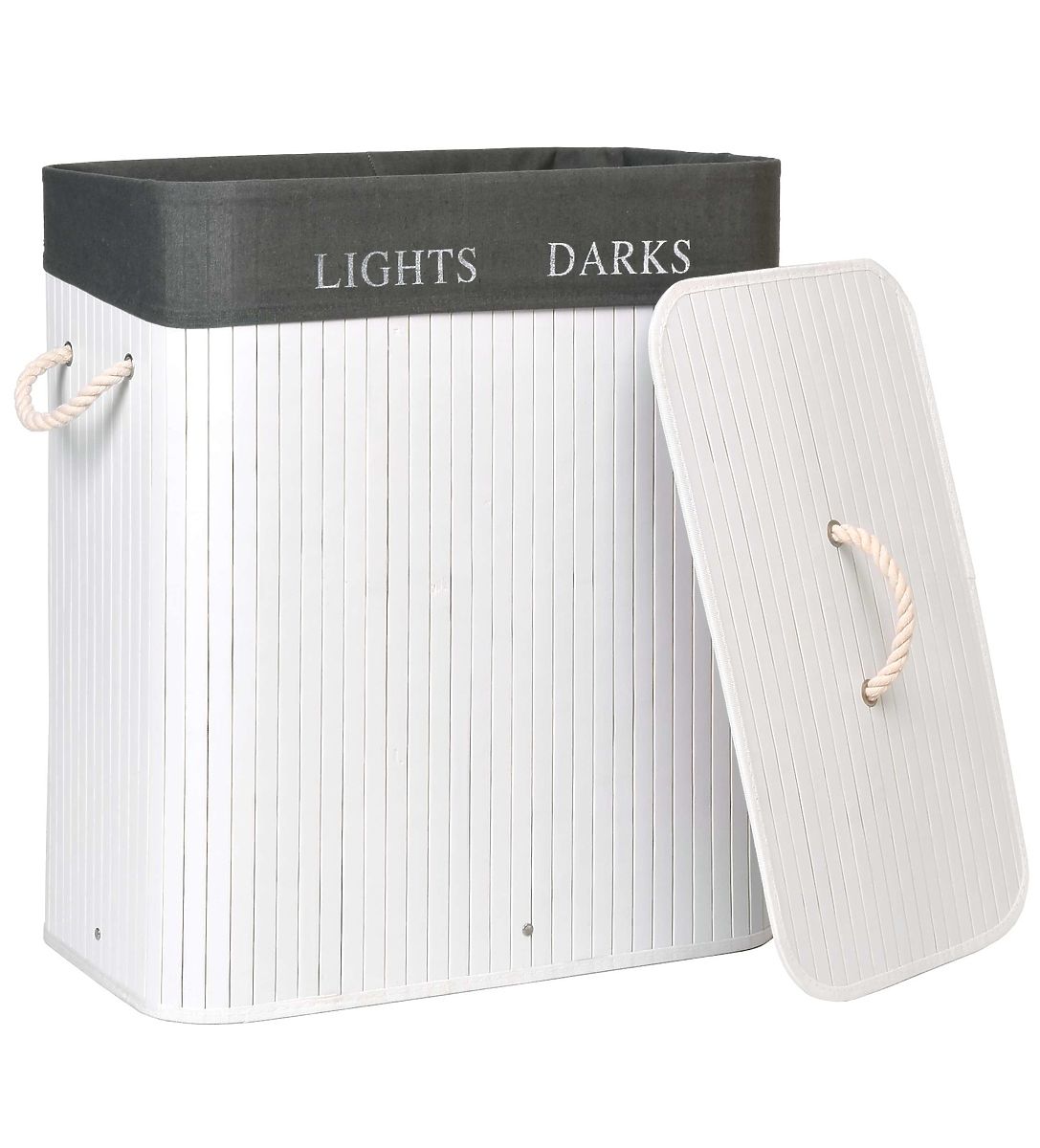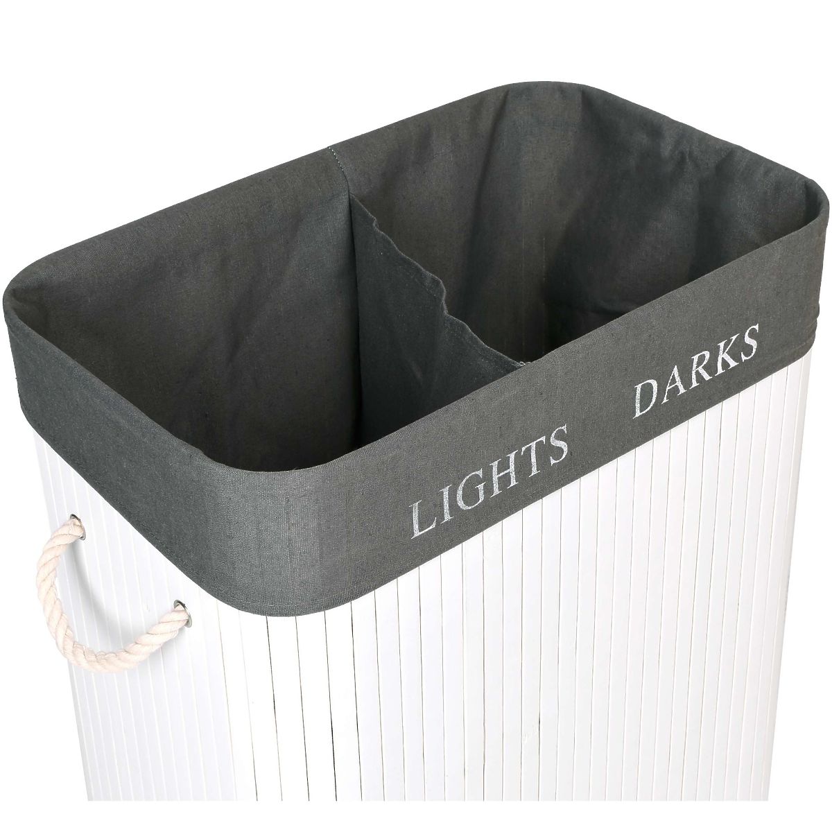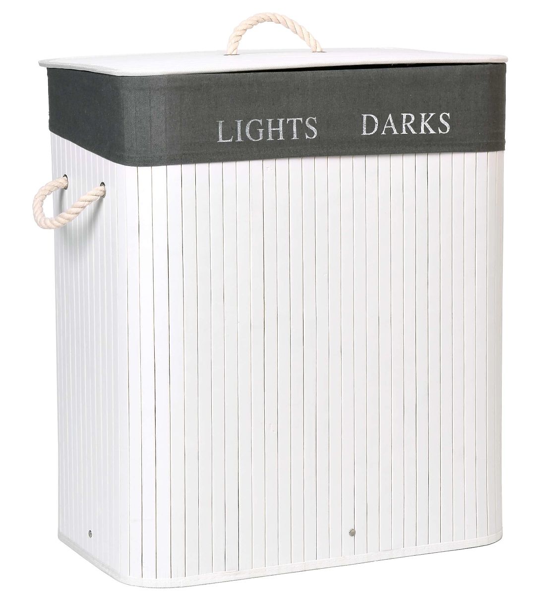Bamboo Laundry Basket 2 Compartments White-Grey