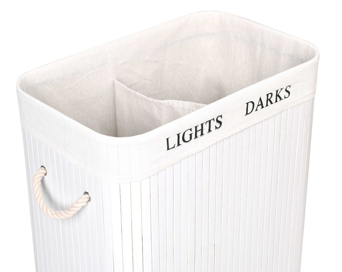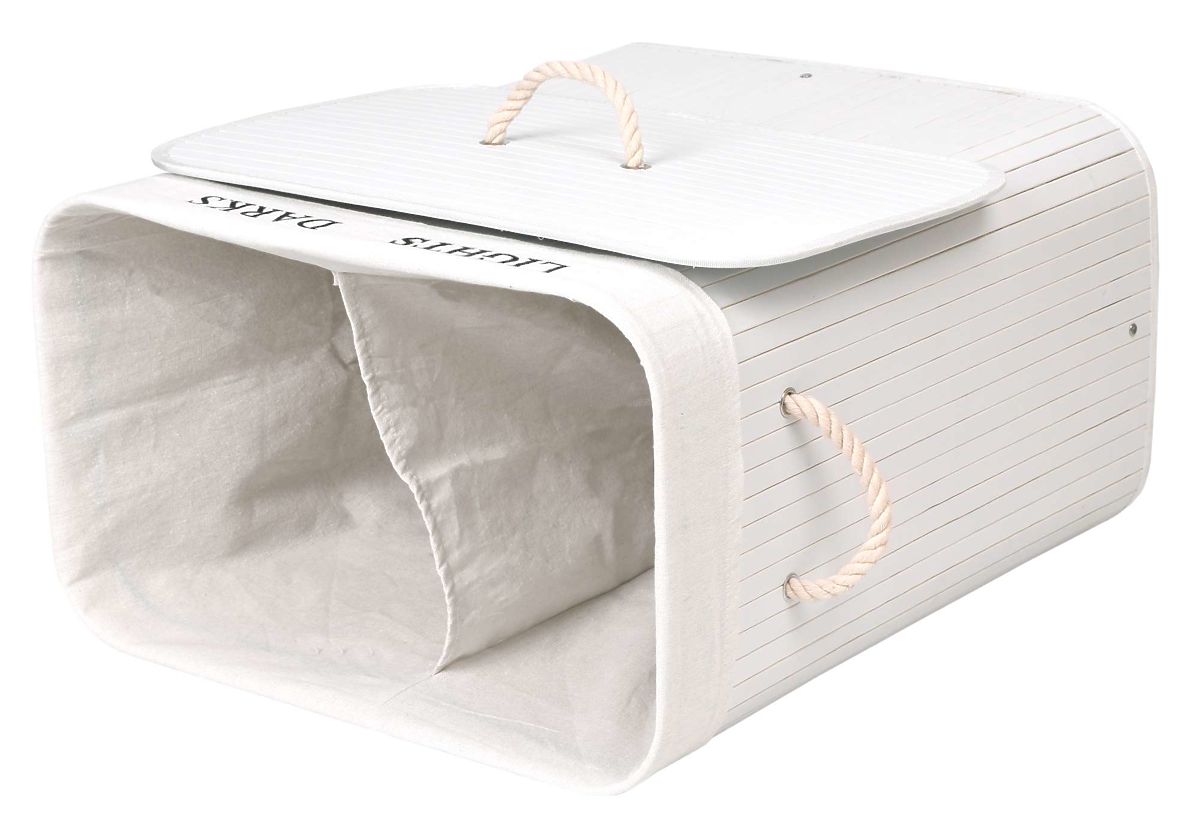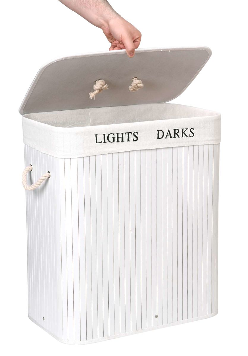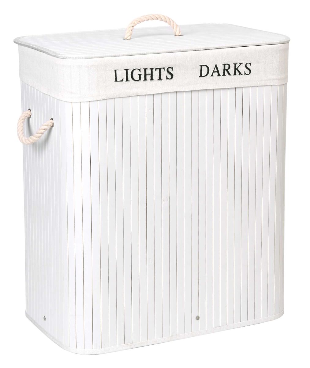 49102-0 Bamboo Laundry Basket with Lid 100L 2 Compartments White